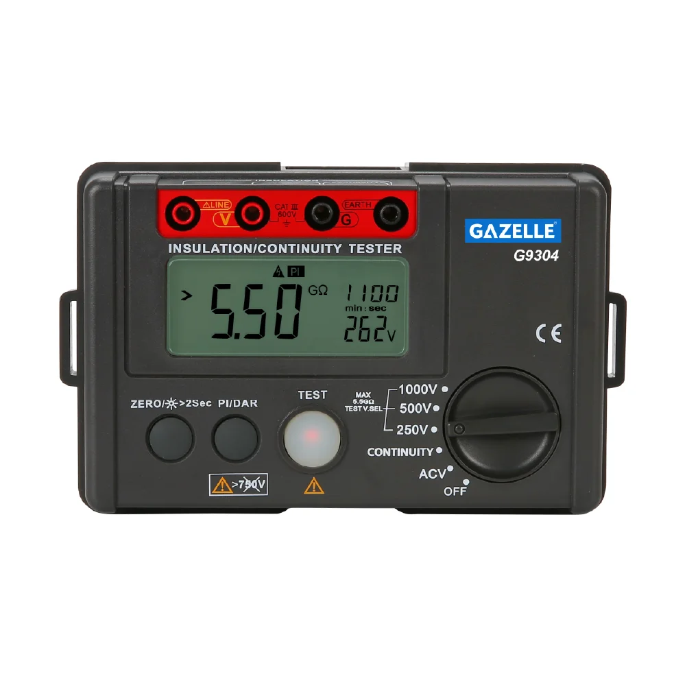 Insulation Resistance with additional Feature for AC Voltage and Low resistance measurement With a 3-selections of voltage testing from 250V, 500V and 1000V PI and DAR test measurement One press start and stop button with light indicator during testing CAT III 600V safety rating with double insulation