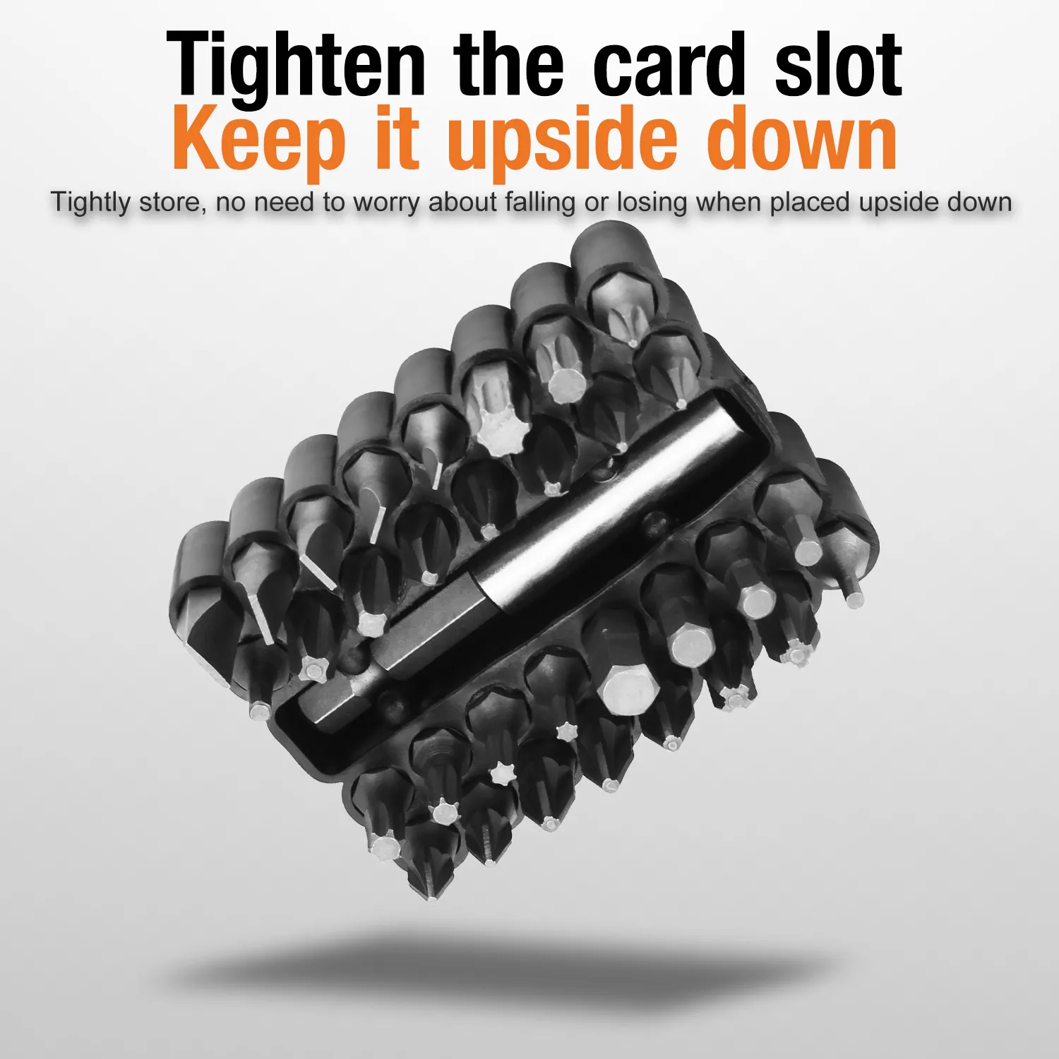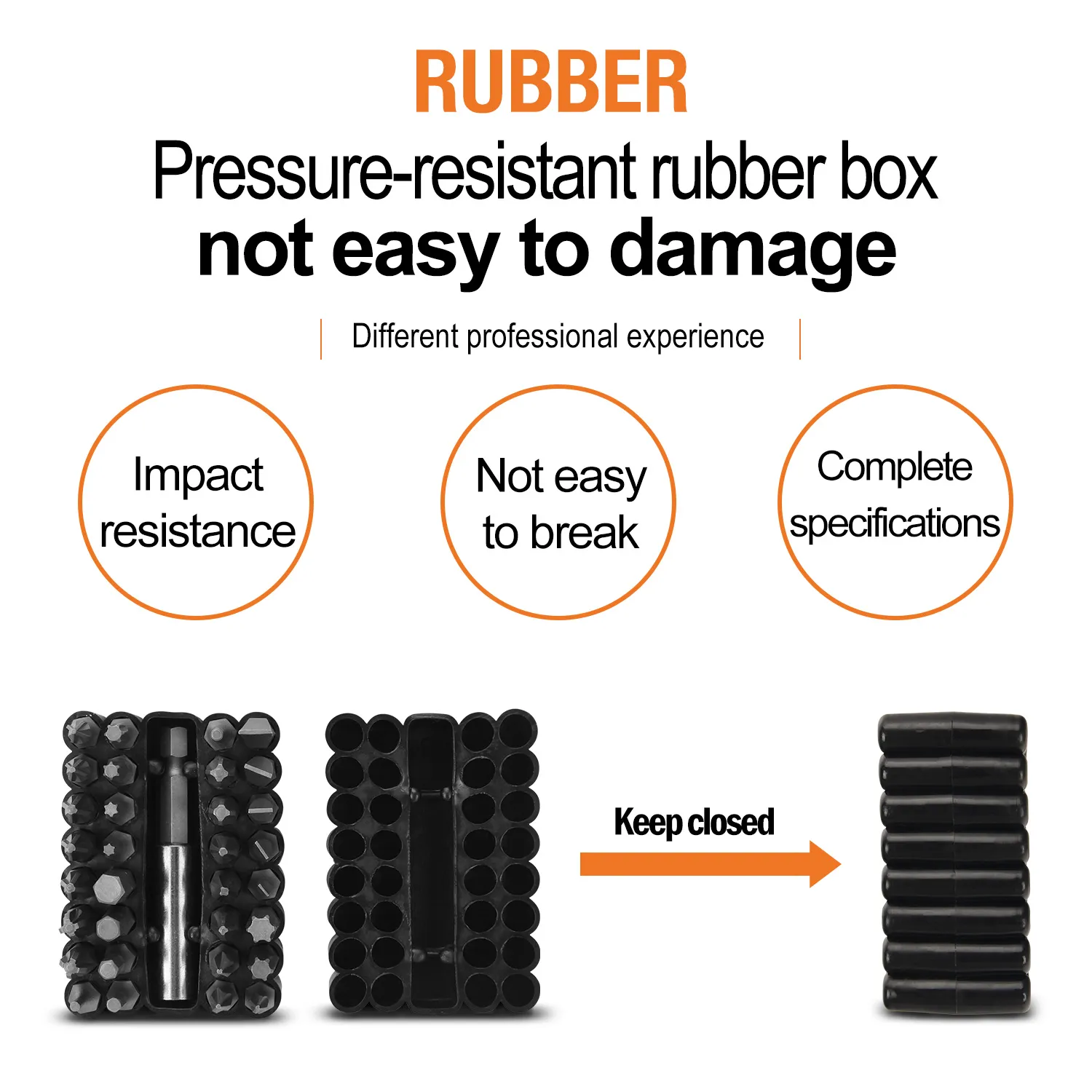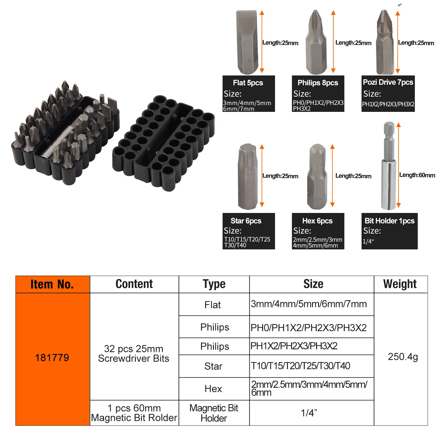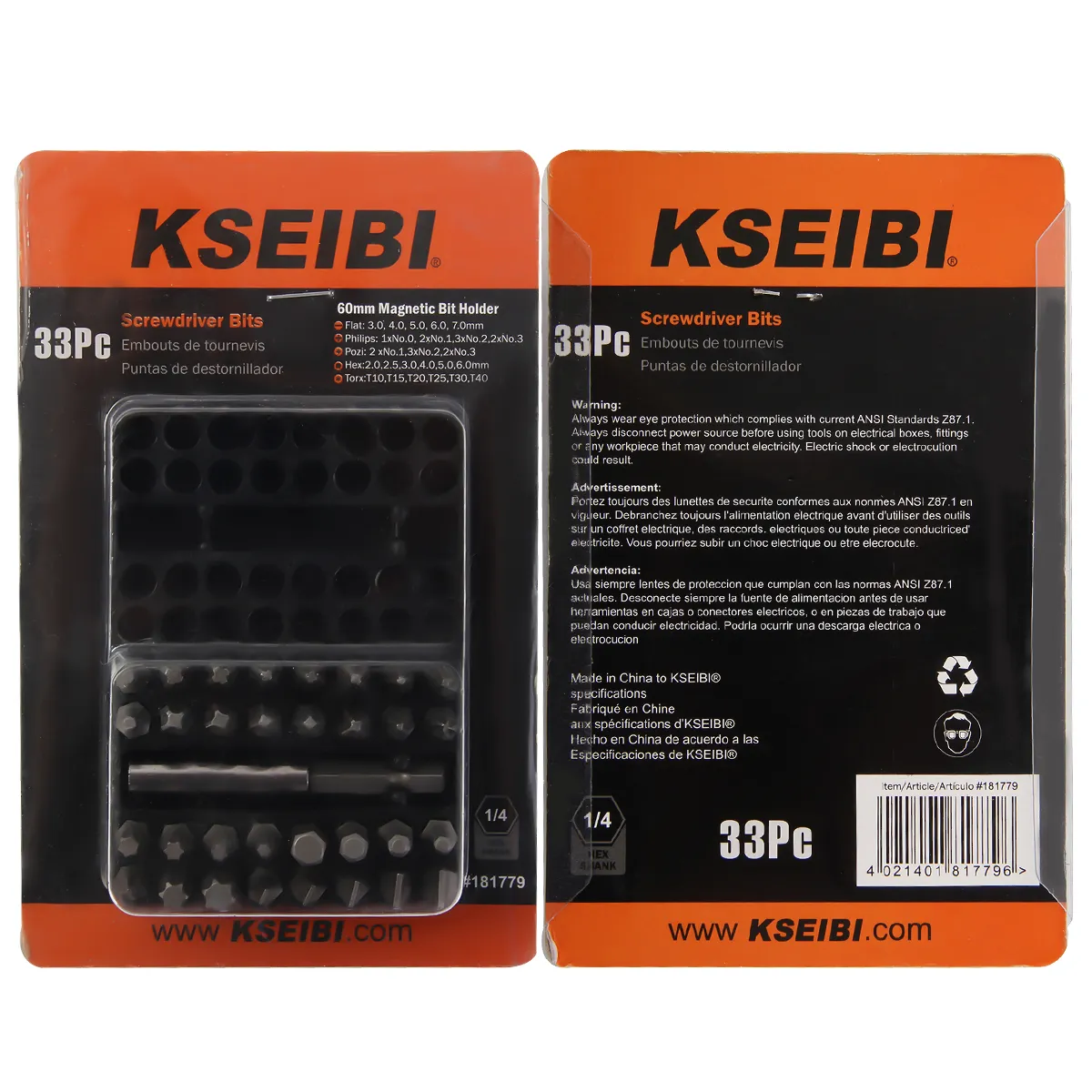The KSEIBI Screwdriver Bit Set 33-Pc. is a versatile and durable solution for fastening and drilling tasks. Engineered from chrome vanadium steel with a stain finish, this set is built to withstand repeated use while maintaining precision and strength. Each bit is designed to fit seamlessly with power tools, ensuring reliable performance in demanding applications. With 33 carefully selected bits, this set covers a wide range of fastening needs, making it an essential addition for professionals in construction, maintenance, and repair industries. Whether you're working on detailed assembly tasks or heavy-duty installations, the KSEIBI Screwdriver Bit Set provides dependable results every time. Packaged on a blister card for easy organization and accessibility, this set is perfect for tradespeople and technicians who value efficiency and durability in their tools. KSEIBI?? reputation for reliability and precision is evident in every detail of this screwdriver bit set, making it a practical choice for those who demand consistent performance. 1. Screwdriver bit set includes 33 pieces for versatile applications. 2. Made from durable chrome vanadium steel for long-lasting performance. 3. Features a stain finish for added resistance to wear and corrosion. 4. Compatible with a wide range of power tools for enhanced convenience. 5. Precision-engineered bits ensure accurate and reliable performance. 6. Suitable for both professional and general household use. 7. Comprehensive set covers a variety of bit types and sizes. 8. Designed for high torque and heavy-duty tasks. 9. Easy to store and organize on a blister card. 10. Provides excellent value with a durable and versatile selection of bits.