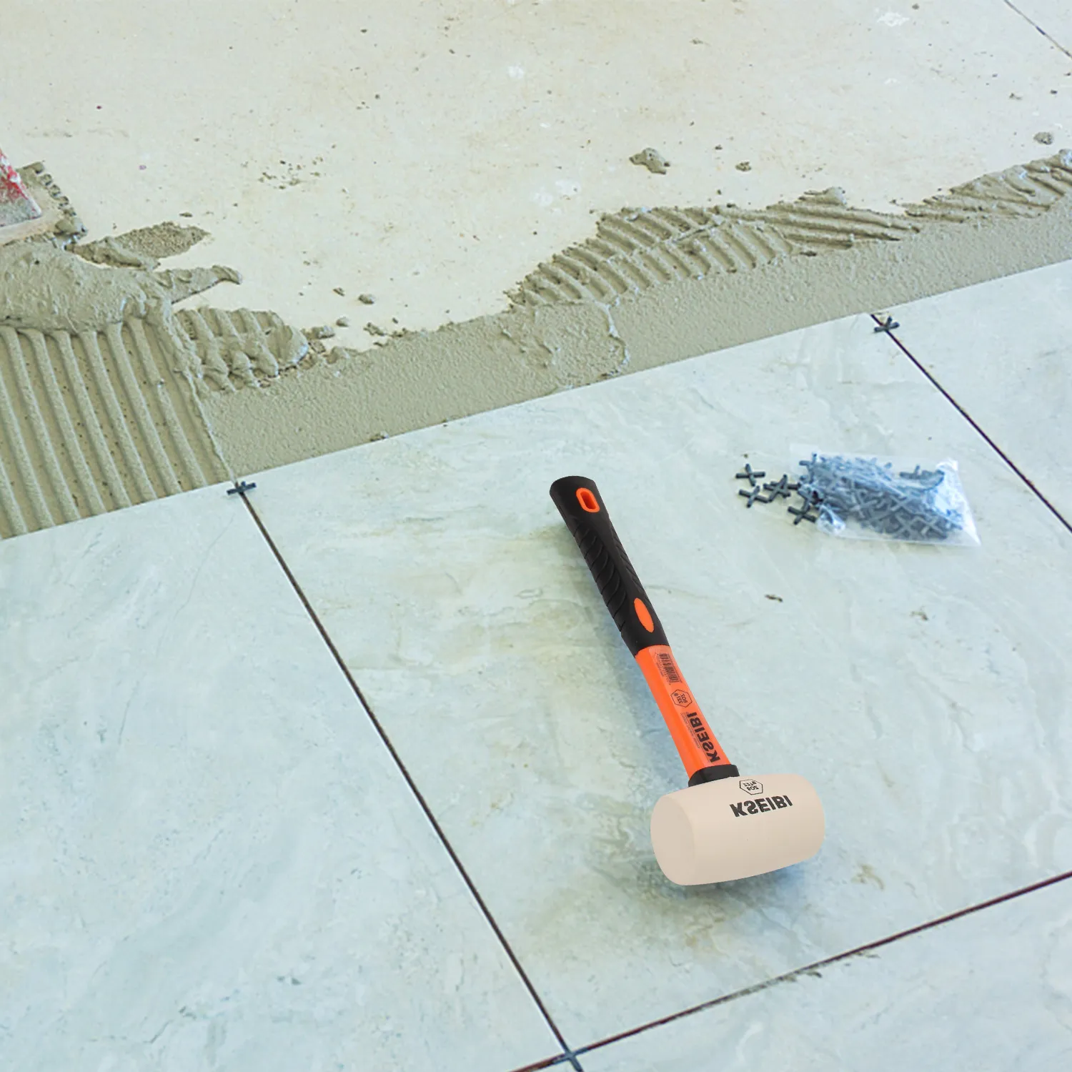The KSEIBI Rubber Hammer Hard Soft White Head/ProGrip is a versatile tool designed for precision and care in every strike. Featuring an 8oz soft rubber head, this hammer is perfect for applications requiring non-marring impact, such as assembling delicate materials, adjusting components, or working on surfaces prone to damage. The dual-material black and white rubber head ensures controlled force while leaving surfaces unscathed, making it ideal for professionals in woodworking, automotive repairs, and general assembly. The fiberglass handle is engineered for durability and reduced vibration, providing a secure and comfortable grip even during extended use. The ProGrip design enhances control, minimizing fatigue while maintaining precision. Proudly marked with the KSEIBI branding, this tool reflects the brand?? commitment to reliability and performance. Whether you??e a craftsman, mechanic, or DIY enthusiast, the KSEIBI Rubber Hammer delivers the balance of strength and gentleness needed for sensitive tasks. Packaged in a double blister for added protection during transport, this hammer is built to meet the demands of everyday professional use. 1. Rubber hammer features a dual-sided black hard rubber head for versatile use. 2. Soft rubber material ensures non-marring strikes, ideal for delicate surfaces. 3. 8oz weight provides optimal balance between power and control. 4. Fiberglass handle enhances durability and reduces vibrations during use. 5. Ergonomic ProGrip handle design offers superior comfort and a secure grip. 6. Durable construction makes it suitable for both professional and DIY applications. 7. White head design minimizes marks on work surfaces for a clean finish. 8. Precision-engineered for long-lasting performance in demanding tasks. 9. KSEIBI branding ensures trusted quality and reliability. 10. Perfect for applications requiring controlled, precise force without surface damage.