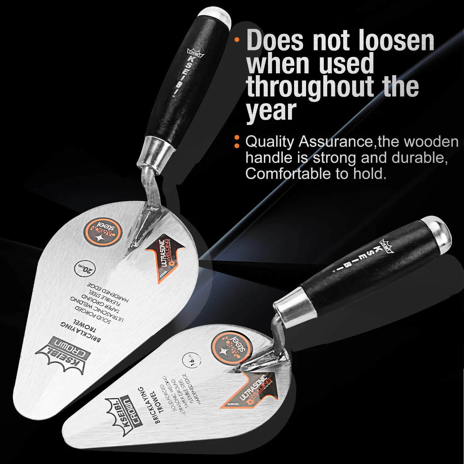 The KSEIBI Walby Pattern Bricklaying Trowel is a dependable tool designed for precision and ease in bricklaying tasks. Constructed from durable carbon steel with a polished finish, it provides exceptional strength and resistance to wear, ensuring consistent performance on demanding projects. The Walby pattern blade is expertly shaped to deliver efficient mortar application and control, making it a practical choice for both detail work and larger masonry jobs. Equipped with a smooth wooden handle, this trowel offers a secure and comfortable grip, reducing hand fatigue during extended use. The ergonomic design enhances control, enabling skilled and accurate handling, even when working with heavy materials. Perfect for professional bricklayers, contractors, and builders, the KSEIBI Walby Pattern Bricklaying Trowel combines durability, precision, and comfort to meet the needs of demanding construction environments. Whether laying bricks, blocks, or stone, this reliable tool ensures a seamless and efficient workflow. 1. High-quality Walby pattern design ensures precision and reliability in bricklaying tasks. 2. Crafted from durable carbon steel with a polished finish for long-lasting performance. 3. Ergonomic wood handle provides excellent comfort and control during use. 4. Ideal for both professional bricklayers and general construction projects. 5. Polished surface reduces material sticking, improving efficiency. 6. Balanced design allows for smoother and more accurate application of mortar. 7. Suitable for heavy-duty use in a variety of masonry applications. 8. Wood handle offers a natural grip, reducing hand fatigue over extended use. 9. Precisely shaped blade enhances ease of spreading and finishing mortar. 10. Trusted by industry professionals for consistent and reliable results.