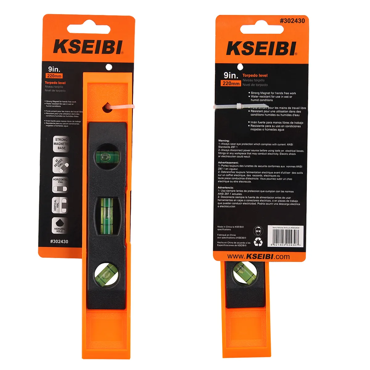 302430 - KSEIBI Magnetic Torpedo Level With Three Levels Pm 22 9"22cm