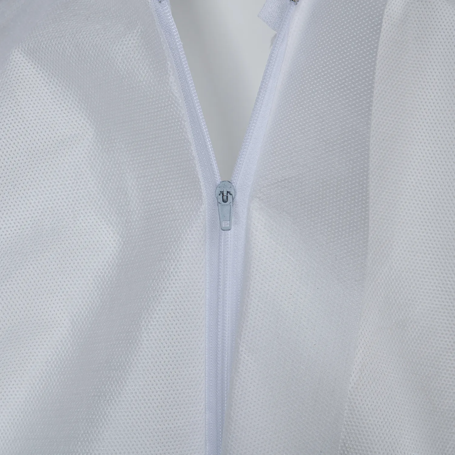 The KSEIBI Disposable Coverall Hooded Paint Suit is designed to provide reliable full-body protection for demanding paint and cleaning tasks. Its lightweight yet durable construction ensures effective coverage while maintaining comfort during extended use. The integrated hood offers added protection for the head and neck, making it ideal for jobs involving splashes, dust, or chemical exposure. Crafted for single-use convenience, this suit is an essential choice for professionals in painting, construction, or industrial cleaning, as well as for DIY enthusiasts tackling messy projects. Its disposable nature simplifies cleanup by eliminating the need for laundering, saving time and effort. Packaged in bulk, the KSEIBI coverall is a practical solution for businesses and teams requiring consistent, dependable protective gear. Reliable, easy to use, and designed with safety in mind, this suit upholds KSEIBI?? reputation for precision and durability in tools and hardware. 1. Provides full-body protection against paint, dust, and light chemicals. 2. Made from lightweight, breathable material for comfort during extended use. 3. Equipped with a hood for added head and neck coverage. 4. Elastic cuffs, ankles, and waist ensure a secure fit and minimize exposure. 5. Designed for single-use to maintain hygiene and prevent cross-contamination. 6. Ideal for paint projects, cleaning tasks, and general industrial applications. 7. Non-restrictive design allows ease of movement during work activities. 8. Durable material resists tearing and holds up under various conditions. 9. Available in bulk for cost-effective use in professional settings. 10. Suitable for both general consumers and industry professionals.