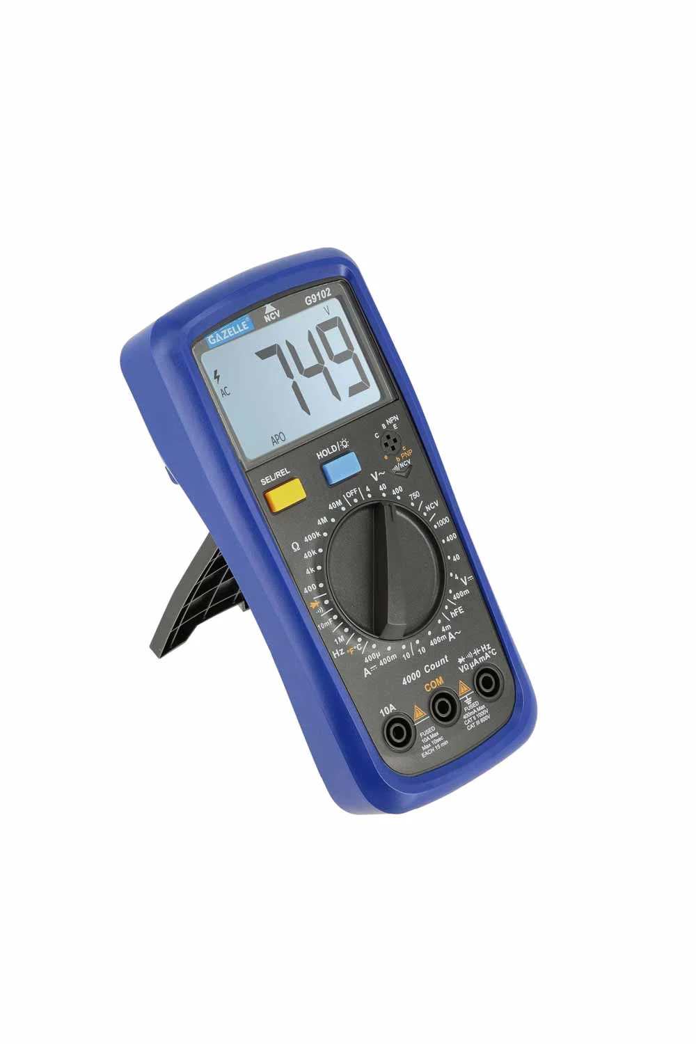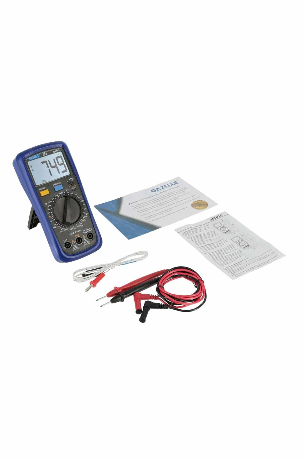 AUTO RANGE - The convenient auto-ranging operation allows you to select the right measurement range when working on a variety of components, from small electronics to main electrical sources. DATA HOLD - The Data Hold function allows you to freeze the current display so you can take notes of the current reading. NCV DETECTOR AND OVERLOAD PROTECTION - The built-in, non-contact voltage detector detects the presence of voltage when placed near live wires, outlets, switches and more. Full range overload protection for additional safety during measurement THERMOCOUPLE PROBE - Thermocouple probe for temperature measurements. Temperature measurements can be displayed in either Fahrenheit or Celsius. BIG LCD DISPLAY - Features bright white backlight and large digits for easy reading even in dark and dimly-lit testing environments