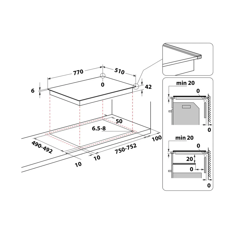 77 CM, 4 Zone.Vitro Ceramic,Side frame ,6.8KW