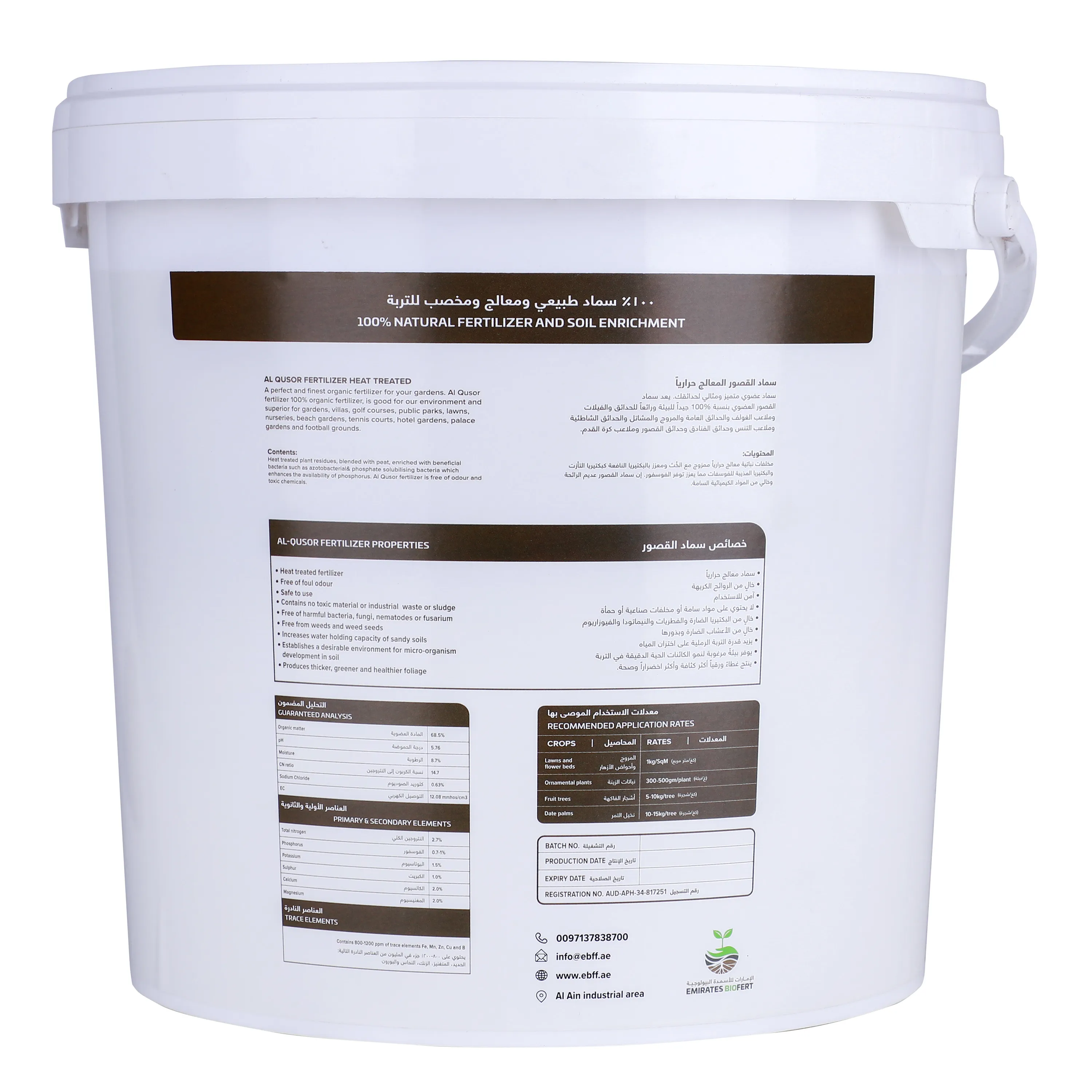 AL QUSOR, A perfect and finest organic fertilizer for the gardens. 100% organic fertilizer, good for the environment and superior for gardens, villas, golf courses, public parks, lawns, nurseries, beach gardens, tennis courts, hotel gardens, palace gardens and football grounds Heat treated plant residues, blended with peat, enriched with beneficial bacteria such as azotobacter & phosphate solubilising bacteria which enhances the availability of phosphorus. Al Qusor fertilizer is free of odour and toxic chemicals