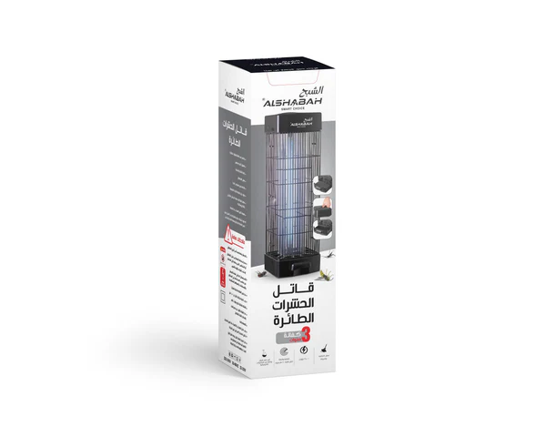 ALSHABAH Original Black Insect Killer – an effective and durable device that eliminates all types and sizes of flying insects. It can be wall-mounted or placed on the floor, covers an area of 25 square meters, comes with a 3-year warranty, and is proudly made in Jordan. Modern, Durable Design : Crafted with a white ABS plastic body for long-lasting use and a sleek, attractive appearance. This is the original high-efficiency Alshabah device in black. Energy-Efficient Operation : Operates on 220-240V (50-60Hz) at only 22-25W, delivering high performance with minimal power consumption. Powerful Insect Attraction & Elimination : Features a 15W black light lamp (made in Thailand) to lure flying insects, combined with a 3600V electric shock that swiftly eliminates all types and sizes of flying insects. Versatile Installation Options : With dimensions of 60cm (H) x 16cm (L) x 16cm (W), it fits seamlessly into various indoor settings. It can be wall-mounted, placed on the floor, or set on a shelf. Wide Area Coverage : Effectively covers up to 25 square meters, ensuring comprehensive pest control. Additional Features : Comes equipped with an integrated tray for easy insect collection. Peace of Mind Guaranteed : Backed by a 3-year warranty from Alshabah in the UAE, ensuring reliable performance and a consistently bug-free environment. Proudly Made in Jordan : Manufactured in Jordan with exceptional quality and craftsmanship.