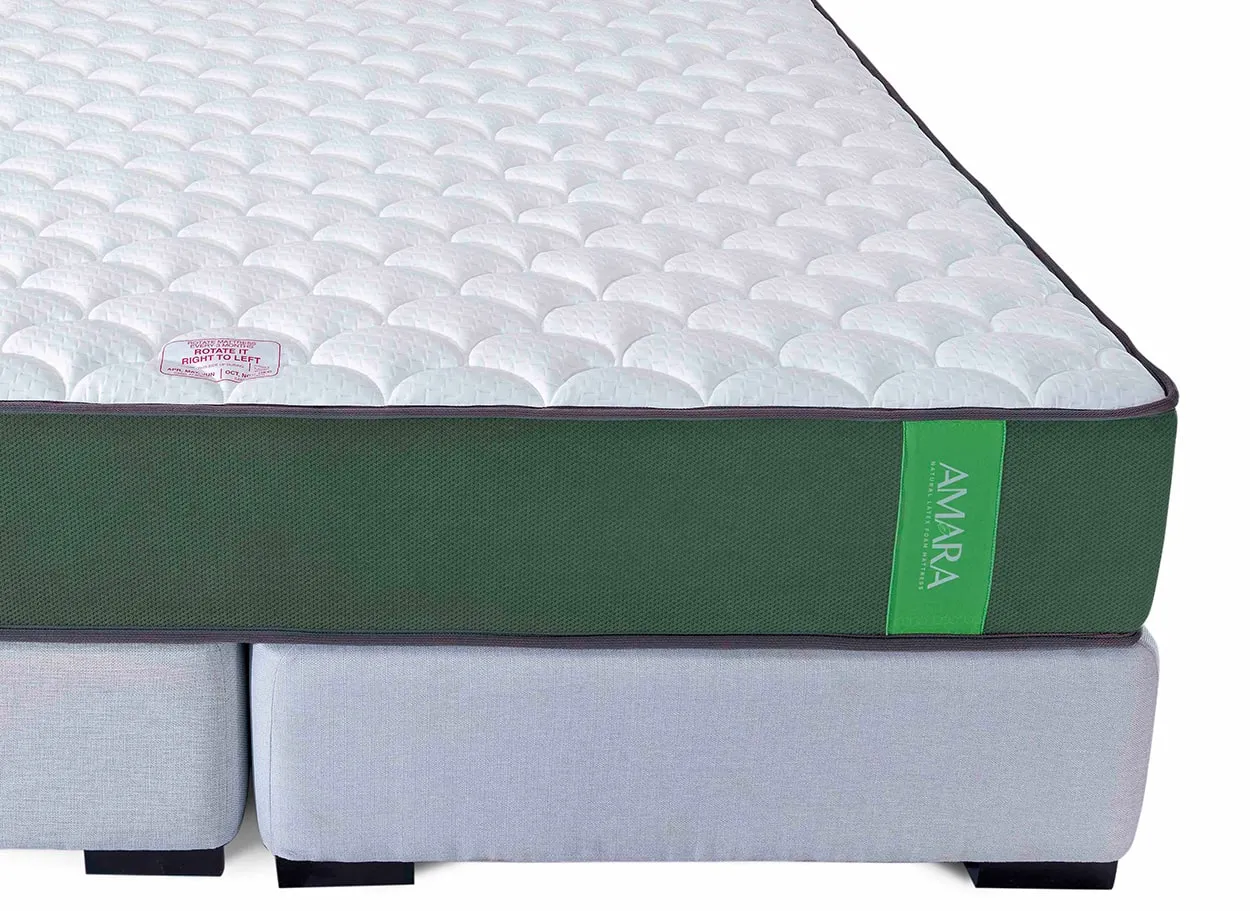 Amara Natural Latex Foam Mattress The Amara Natural Latex Foam Mattress is the best premium latex foam mattress for a comfortable and restful sleep. It is 24 cm thick and has a medium-soft comfort option. The mattress is made with a combination of Natura organic latex foam, SoftPetal 30D foam, and luxury pocket springs for superior support and pressure relief. The Natura organic latex foam is naturally hypoallergenic and anti-microbial, making it ideal for people with allergies or asthma. The gentle cushioning and buoyant support of NATURAORGANIC LATEX FOAM are particularly beneficial for sleepers with back and joint pain. NATURAORGANIC LATEX FOAM softly cradles heavy body parts, such as the hips and shoulders. This light contouring provides pressure relief near the joints and lower back, while the natural elasticity of latex maintains proper spinal alignment by gently supporting lighter areas, like the neck and back. Key Features Extremely comfortable, promoting pain relief Ideal for individuals with back pain or joint pain Supports natural spine alignment Naturally resistant to mold and dust mites, allergen-free Environmentally responsible Excellent air circulation Minimal motion transfer Pocket Spring Mattress SWEDISH TECH Pocket Spring provides world-class support throughout the mattress and minimizes motion transfer to limit disturbances caused by your partner, children, or pets. Additionally, the firmer border offers edge support, making it easier to get in and out of bed. Key Features Independent functioning of springs with appropriate tension Individualized support for each person sharing the bed Deep level of support from head to toe Reduces both roll-together and roll-off effects of mattresses Conforms to the contour of your body Provides a luxurious feel