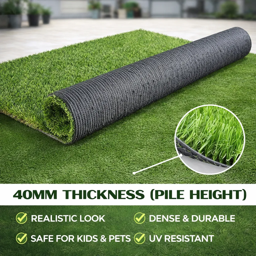 Artificial Grass Turf – 40mm Pile Height, Luxury Artificial Lawn, Dense & Soft Turf, UV Protected for Garden & Landscape
