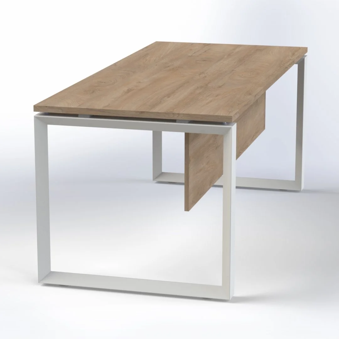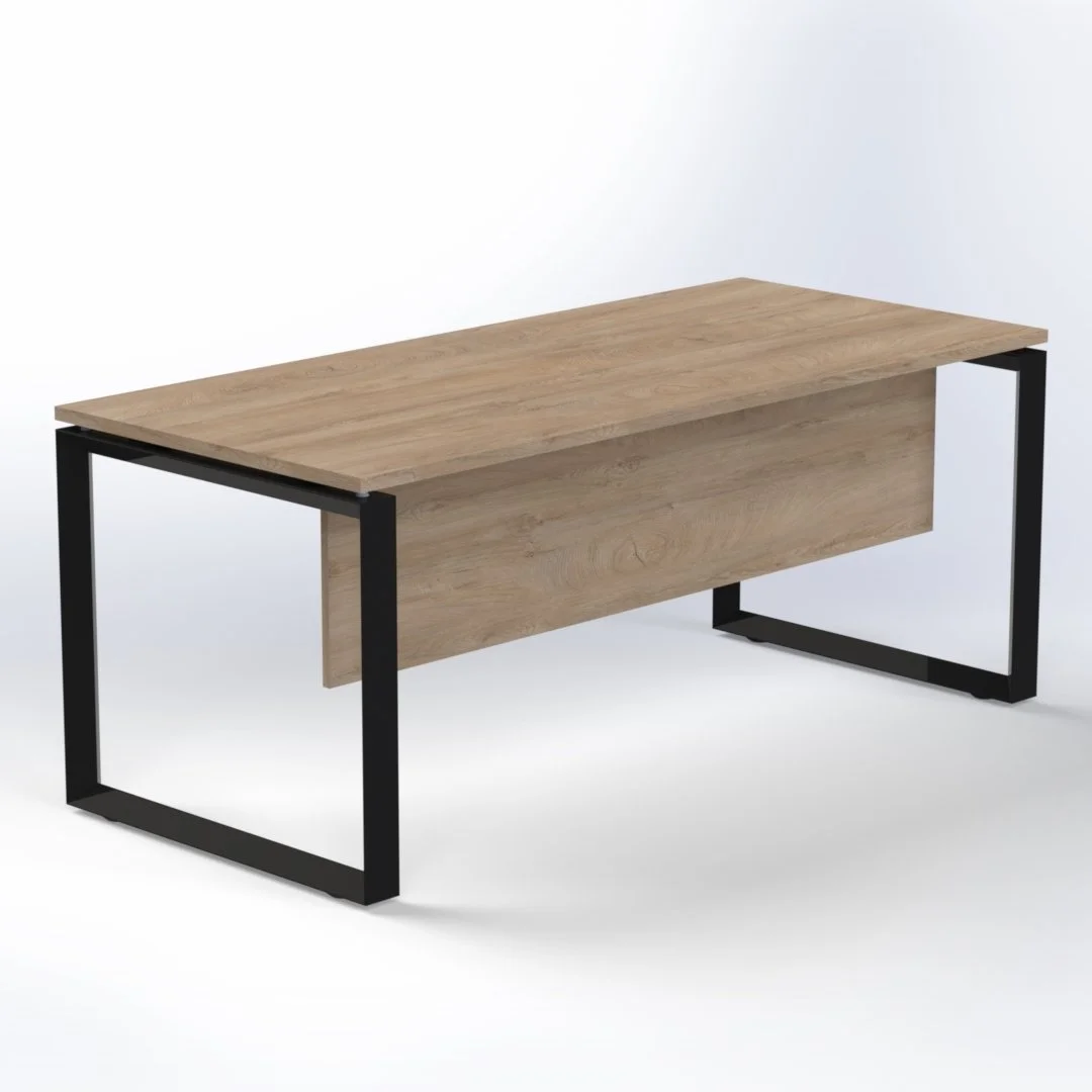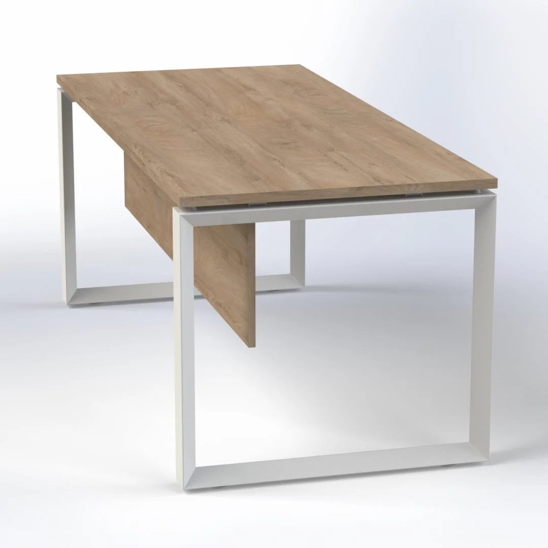 Diamond is a steel-based executive series that delivers contemporary executive, staff, bench and meeting solutions. Design details feature a sturdy pyramid shape stainless steel legs structure for Executive Desk. 25mm MFC top options Heavy duty stainless steel diamond shape loop legs Option of black, white or stainless steel legs Premium steel legs and beams for stability Stabilizing foot adjuster ideal for uneven floor level 18mm thick matching modesty panel Sizes: W1400 x D800, H750 mm 3-year UAE warranty