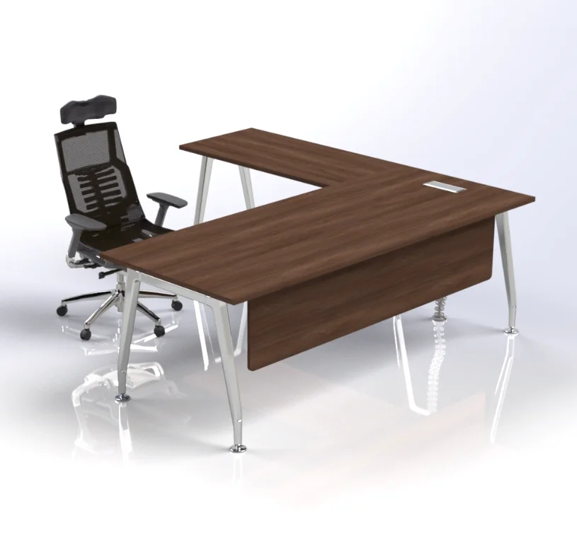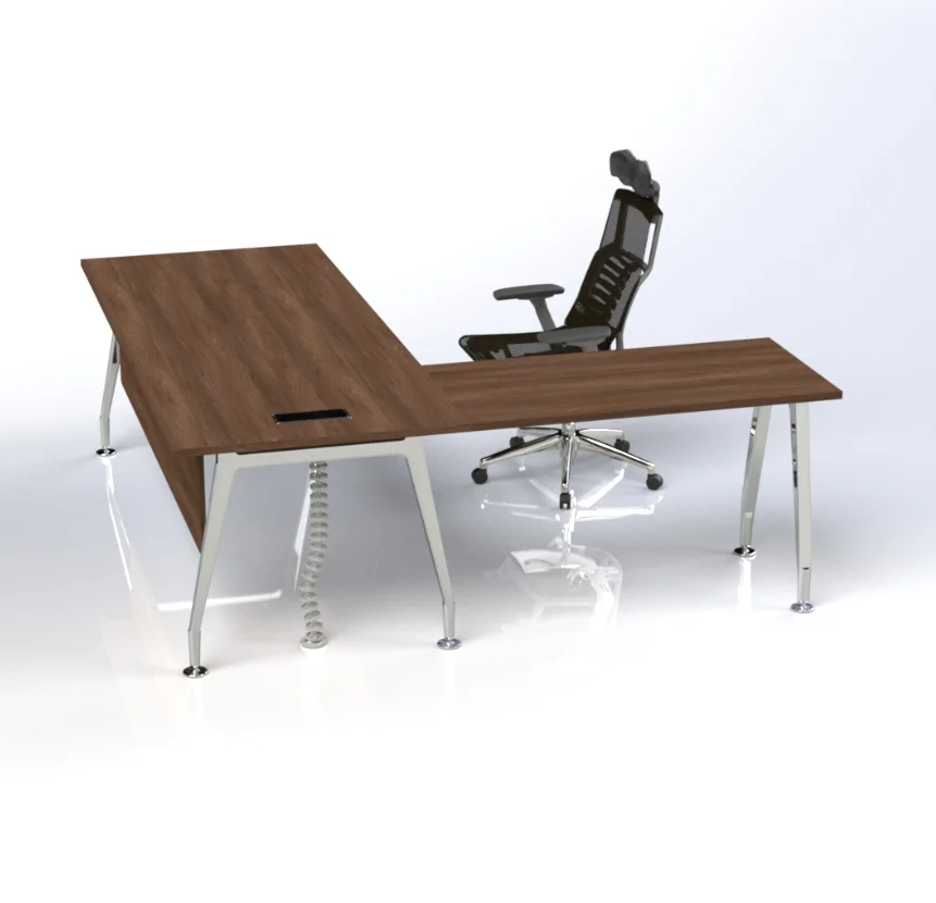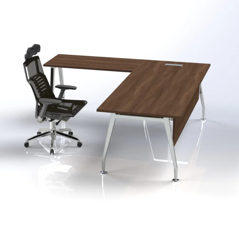 A full collection of desks, benches and tables is offered with a light floating top that sits away from the tapered structural steel frame. Cable management is simple and effective, concealing all vertical and horizontal cable paths from view. 25mm MFC desktops Heavy duty cast aluminium legs and structure Chrome legs and black beams for stability 1mm protective slim edge banding Stabilizing foot ideal for uneven floor level 18mm thick matching modesty panel Integrated wire management with snake, wire flap Mobile pedestal (recommended add-on) Length of return is adjustable from W800-1200 mm Sizes: W1600 x D2100, H750 mm 3-year UAE warranty