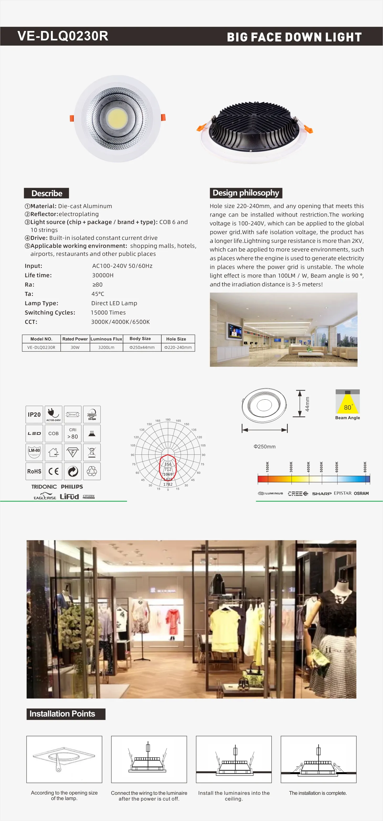 Power:7w Beam angle:90" voltage :AC220-240 50/60Hz Ra:80 Body size :?95*51mm Hole size :?85mm CCT:3000K/4000K surface color?white/sliver/gold Material :aluminum warranty :3years