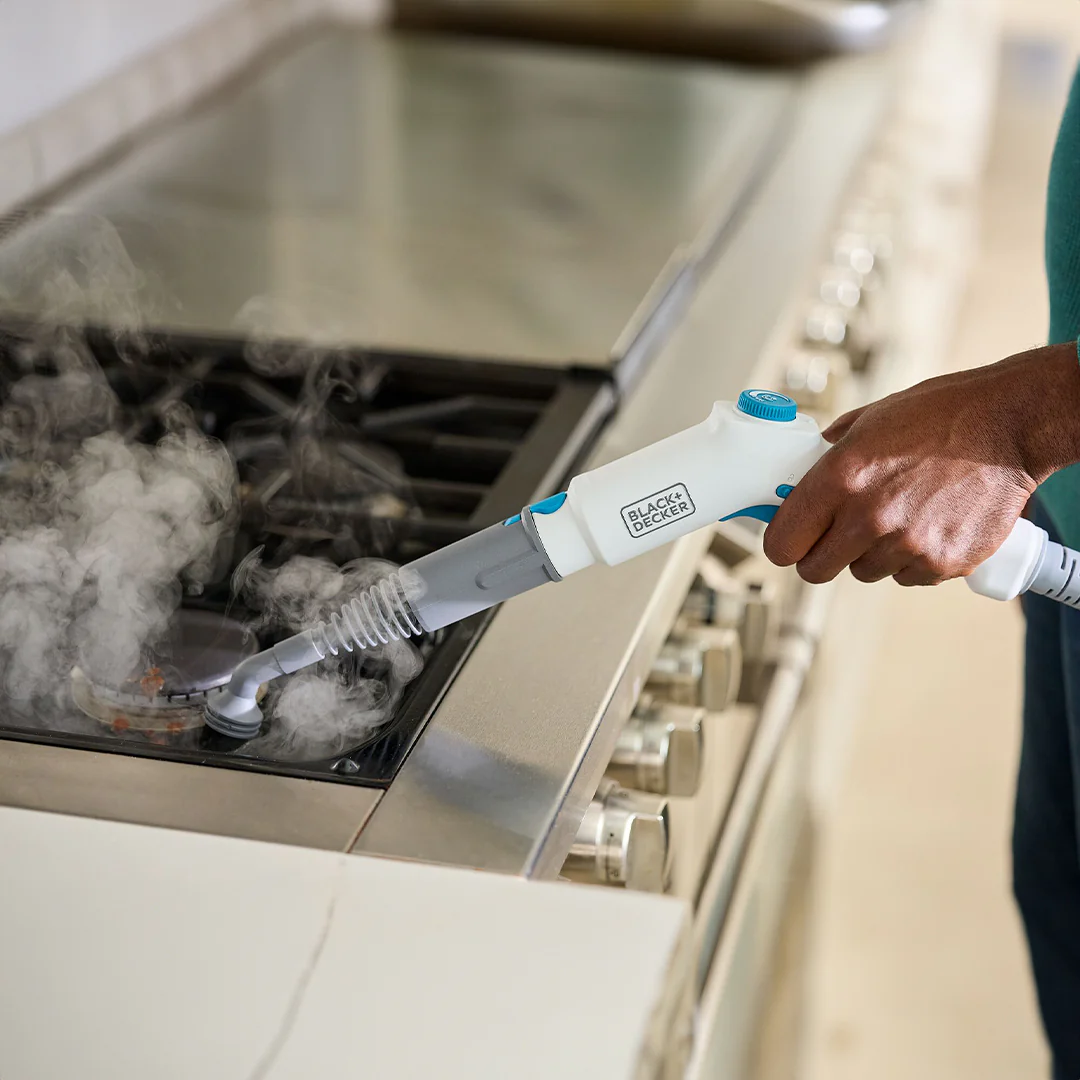 BD-BHSMP2008-GB > Pressurized boiler - Provides 4 bar of powered steam for most powerful steam clean ? Removable Tank - Continuous cleaning with dual tank system of 1.2L capacity ? 180° Pivoting floorhead - Clean all sealed floor types in the home, including hard to reach areas ? Multifunctional Accessories - Effective cleaning of different surfaces with the floor nozzle, hand nozzle, round brush and much more