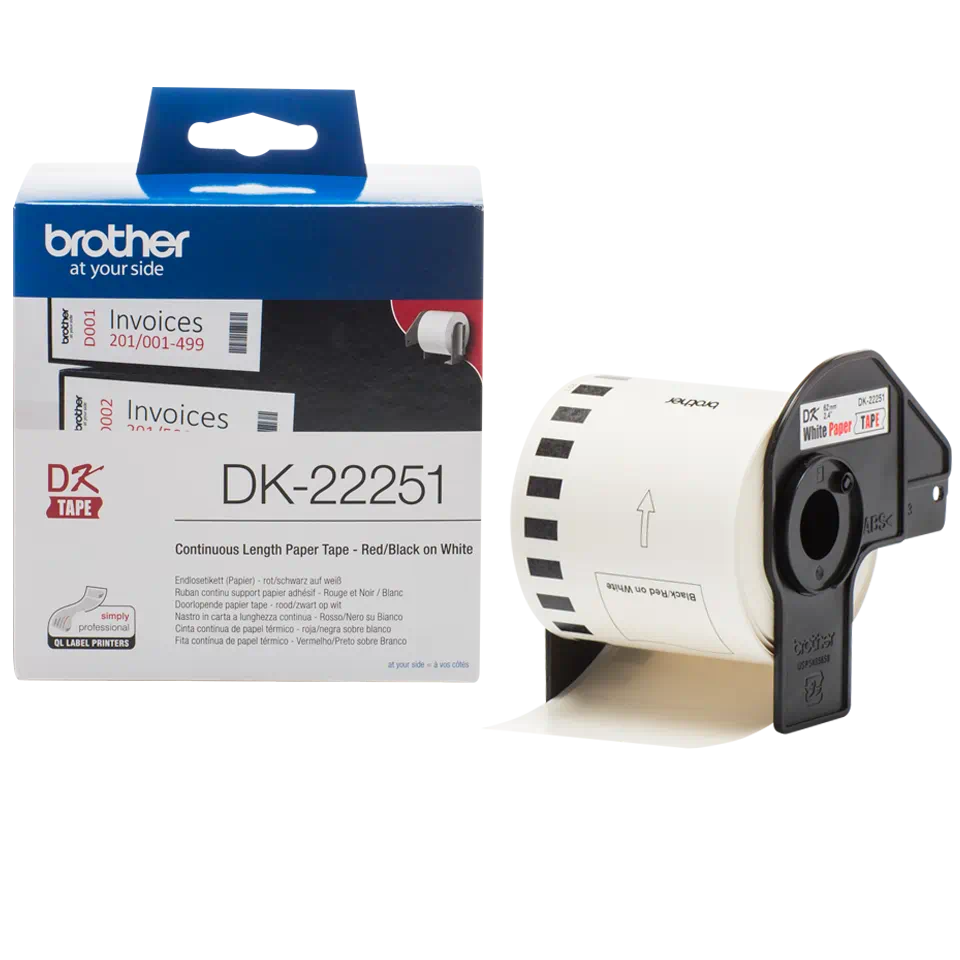 Brother DK22251 CONTINUOUS PAPER LABEL ROLL BLACK AND RED ON WHITE