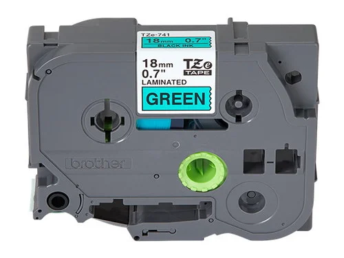 BROTHER TZE-741 3/4 IN. BLACK ON GREEN P-TOUCH TAPE