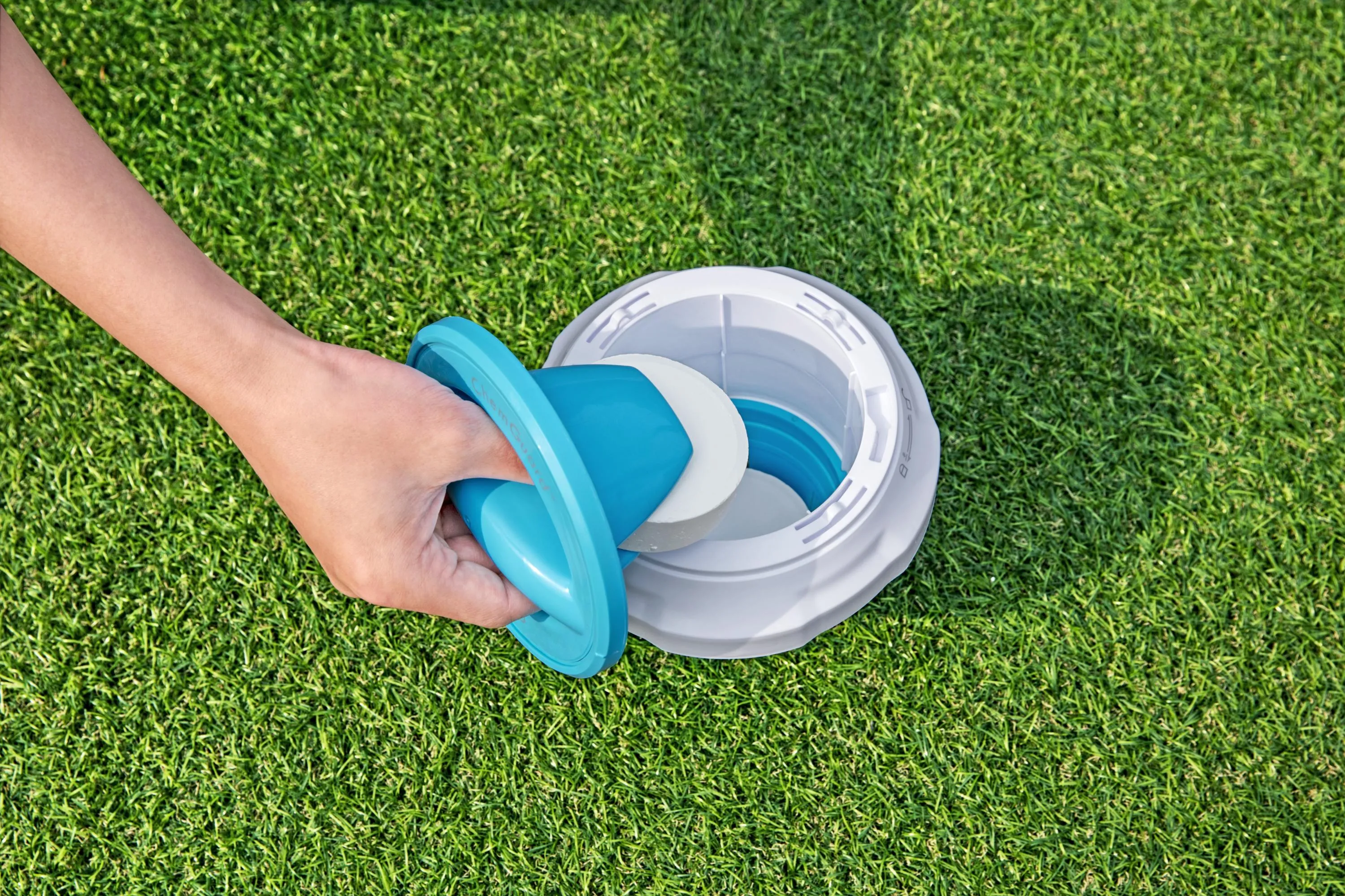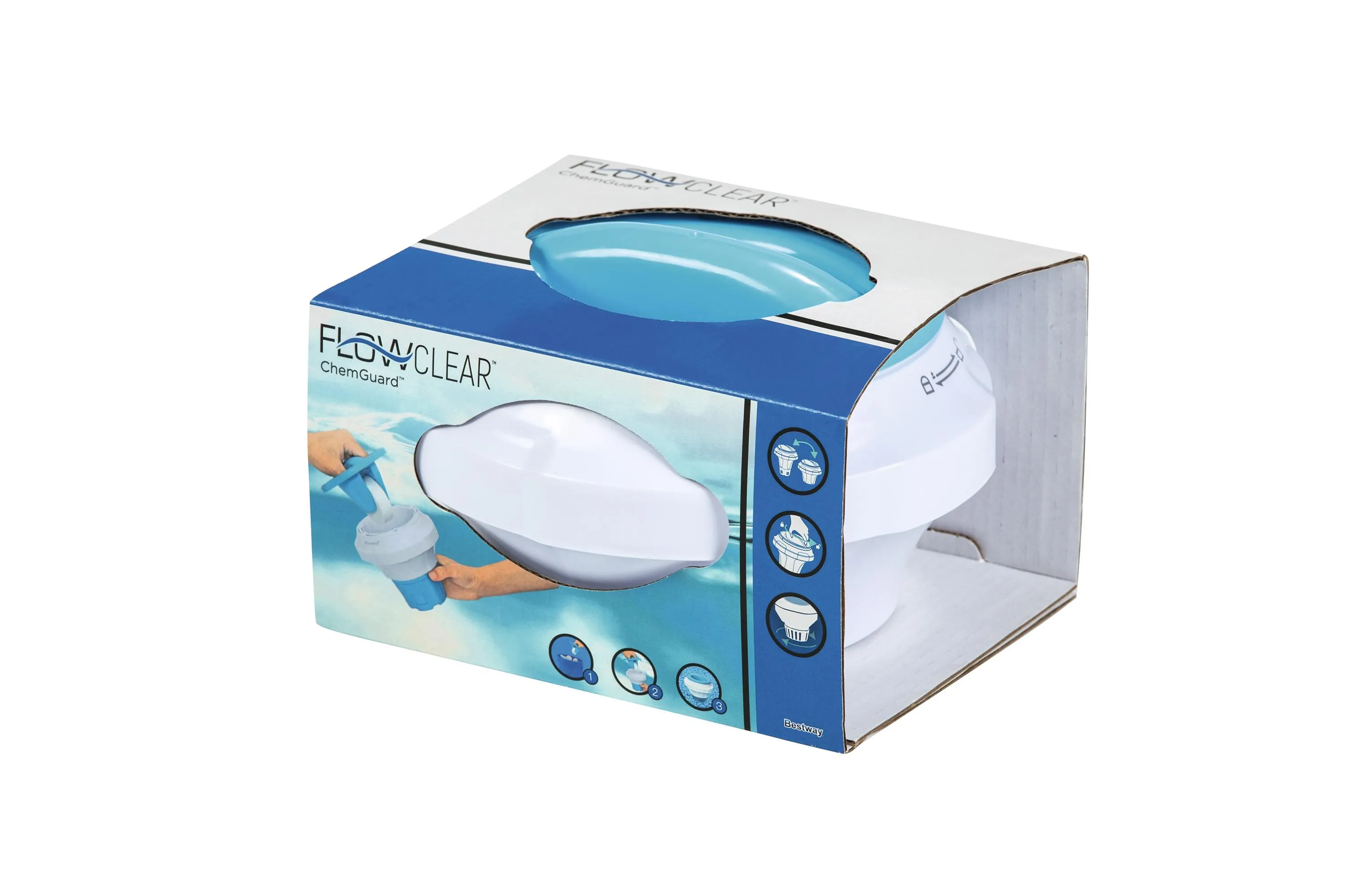 The Flowclear Chemical Floater with a ChemGuard Protective Glove lets you easily handle and maintain your pool chemical levels. The lid doubles as a ChemGuard Glove so you can handle the chemical tablets safely. Getting chemicals on your hands could lead to skin irritation and bleach marks, but using the glove lets you avoid all of that! Plus, the lid also has a dual-action child safe lock to keep those chemicals safe and secure. Just load it up with 7.6 cm chlorine or bromine tablets (not included), and it will float around while dispensing chlorine for pristine pool water. On top of that, the adjustable dial lets you control the release of the chemicals, so you can set the amount of chlorine that is dispensed based on your pool size. The compact collapsible design is ideal for off-season storage. With this floater, you wont have to give those chemical levels a second thought!