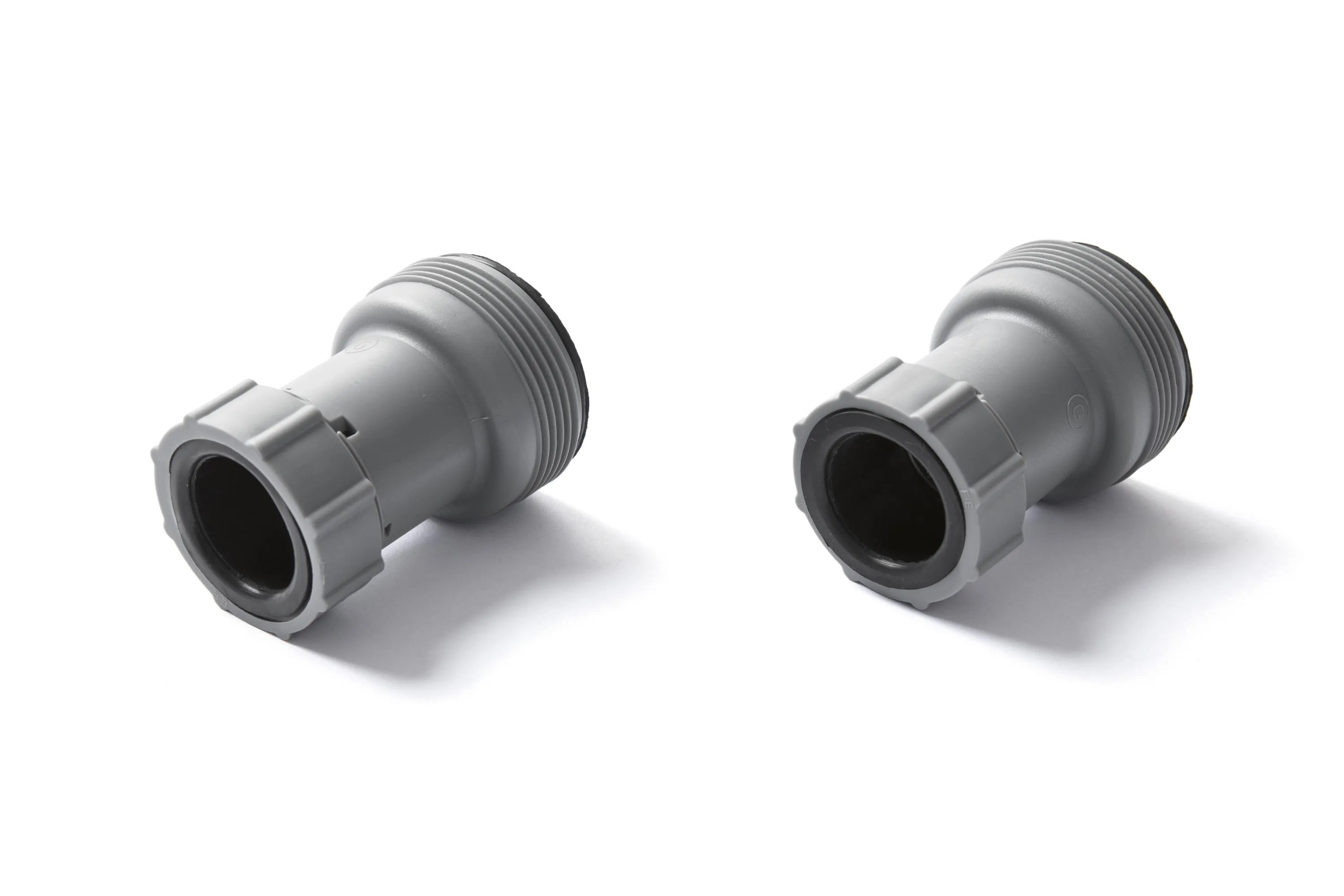 The Bestway Hose Adapters are a simple and effective way to give smaller Bestway pools larger pumping power by enabling more powerful filter pumps to connect to smaller pools, improving the flow of clean water. Two hose adapters are included to fit onto an inlet and outlet hose. These durable, corrosion-proof adapters connect hoses (Diameter 38 mm) to pool valves (Diameter 32 mm). The adapters are easy to install and come with an installation manual.