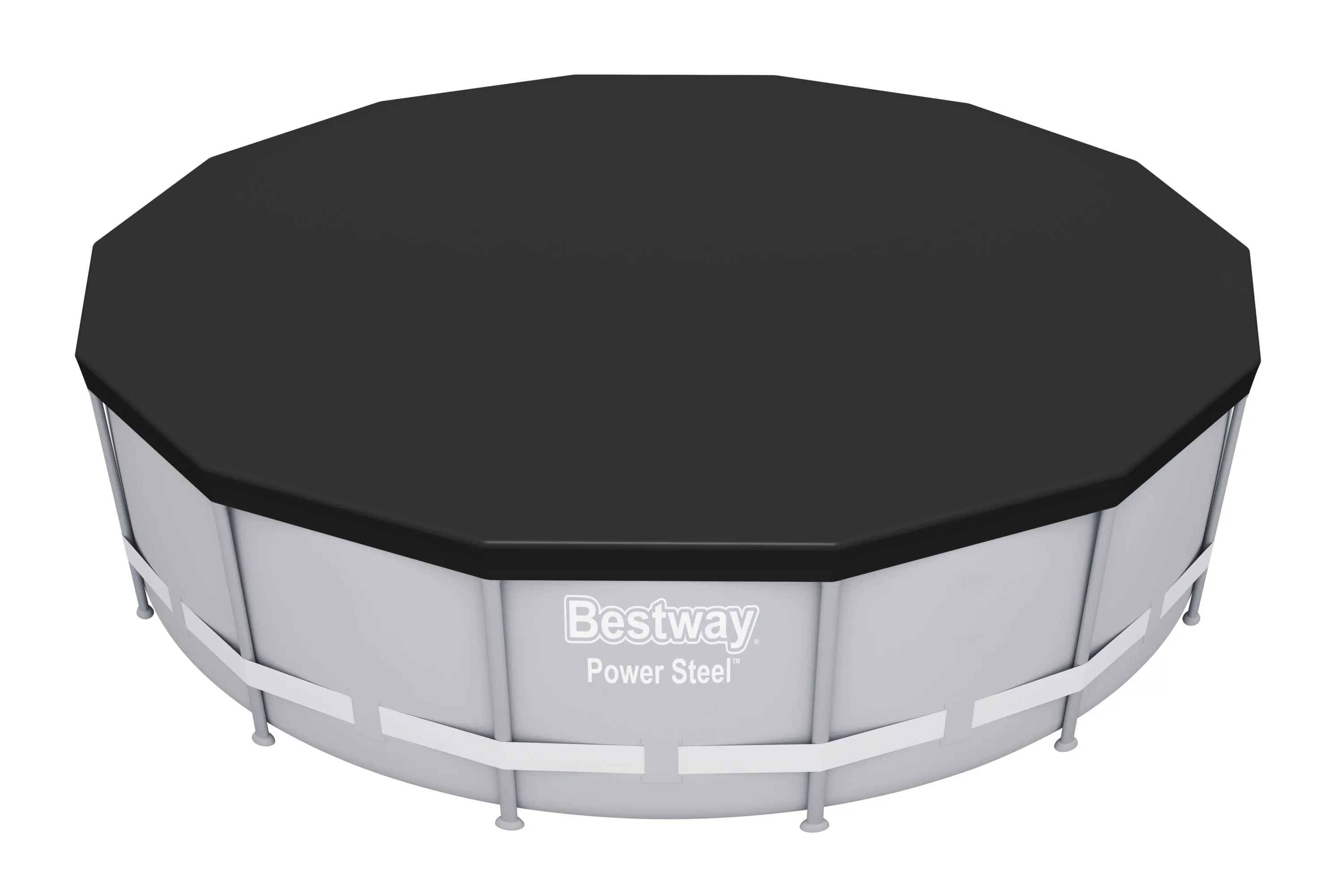 Flowclear 14'/4.27m PVC Pool Cover. Keep debris, leaves, and trash from getting into your pool with this Flowclear pool cover. Above ground swimming pool covers prohibit algae growth and reduce costly replacement chemicals when the pool is in not in use. This pool cover has drain holes to prevent water from accumulating on the cover. The pool cover is easy to install, extremely durable and includes ropes to secure the cover to the pool. Fits 4.27m/14' diameter Power Steel pools.