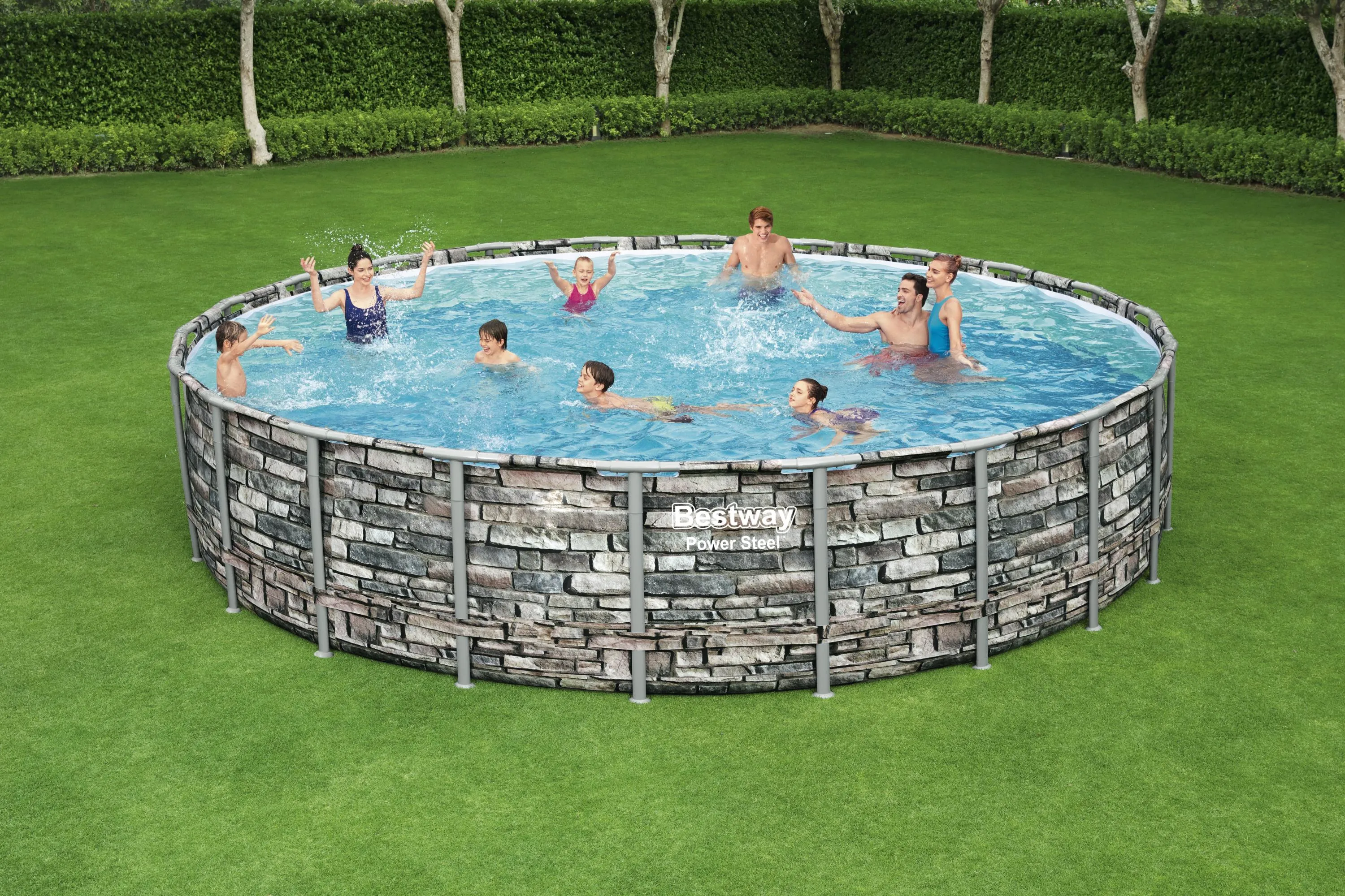 Bestway® Power Steel™ Pools are the prime choice for families due to their reinforced steel frame design engineered for maximum strength and durability. Plus, no tool assembly makes these pools a great option for backyard pool needs. The durable, puncture-resistant Tritech™ liner and corrosion-resistant steel frame with Seal & Lock System™ make this pool series strong and sturdy for backyard use all season long. The round shaped models provide an updated and classic look for any backyard.