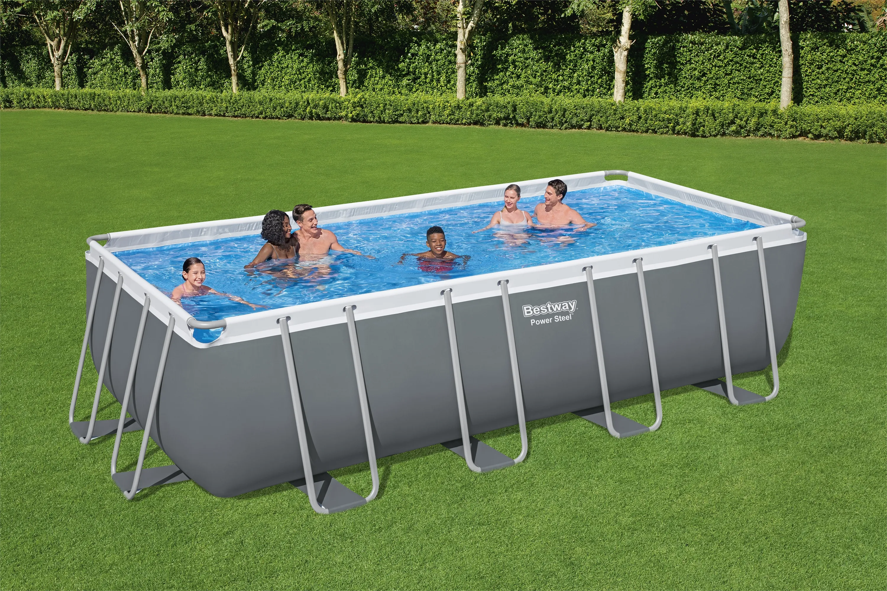This summer, kick the fun up a notch with the Bestway Power Steel Above Ground Pool Set! With plenty of amazing features and plenty of room for all of your family and friends, theres no part of this pool you wont fall in love with. It also comes stocked with a sand filter pump, a ladder, a pool cover and a ChemConnect chemical dispenser. The ChemConnect dispenser maintains clean, healthy pool water by providing a stable level of chlorine that is evenly dispersed throughout the pool.