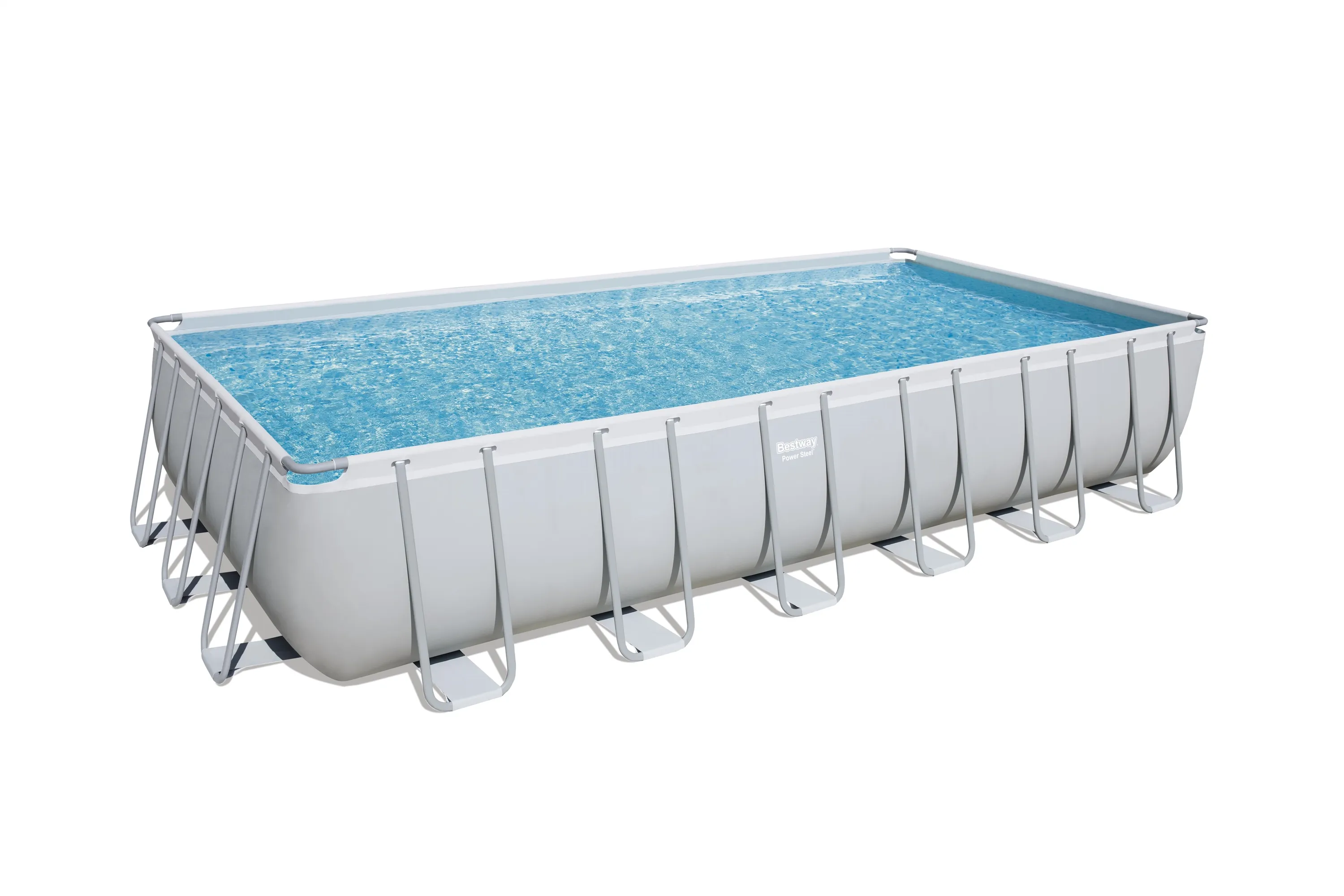 Power Steel 24 x 12 x 52/7.32m x 3.66m x 1.32m Rectangular Pool Set / water capacity (90%)30,045L(7,937gal.) - The extra strong side walls of this pool are constructed with Tritech, a 3 layer reinforced material with a polyester mesh core encased between two layers of high gauge PVC material. This creates a total thickness of 0.40-0.80mm (16-32 gauge) depending on the size of the pool, offering superior strength and durability