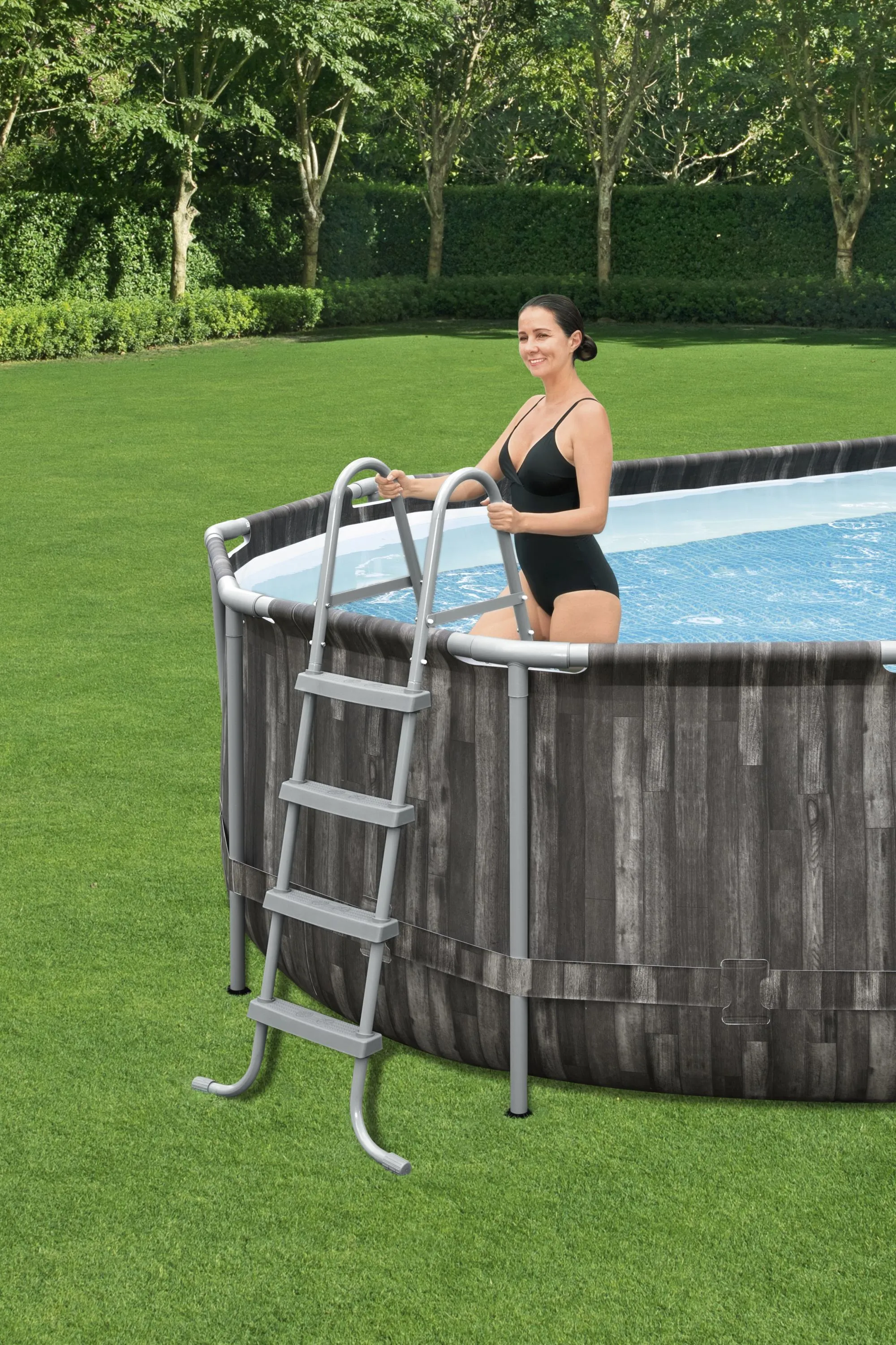 Bestway Power Steel Pools are the prime choice for families due to their reinforced steel frame design engineered for maximum strength and durability. Plus, no tool assembly makes these pools a great option for backyard pool needs. The durable, puncture-resistant Tritech liner and corrosion-resistant steel frame with Seal & Lock System make this pool series strong and sturdy for backyard use all season long. The oval shaped models provide a more convenient fit for various backyards, and also require less water without sacrificing pool area.