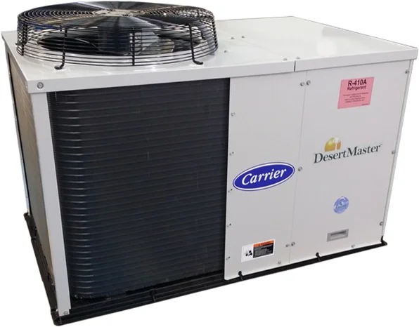 Carrier Packaged AC - 3 Ton The 50TCM units are single side discharge rooftop cooling units utilizing electric heat as an option. Units are prewired, and pre-charged with R-410A refrigerant, and tested at the factory. These units can be placed on the side of a building or on a roof without roof curbs. Each unit is designed to occupy a minimal space, with piping and drain connections readily accessible. Carrier’s Package Rooftop Unit software makes selecting and optimizing the 50TCM easy.