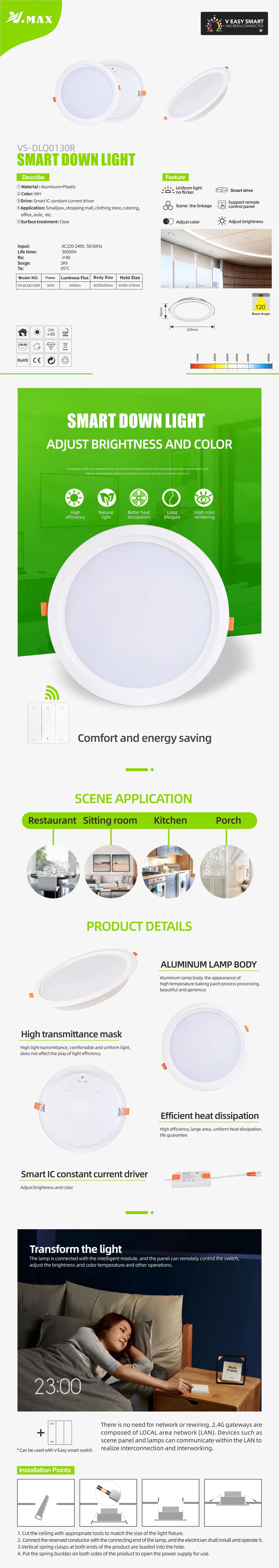 Power: 30w Voltage: AC220-240V 50/60Hz Material: Aluminum Body color: WH CCT: Color change LM: 3000lm Body size: 8inch CRI > 80 Ra ? 80