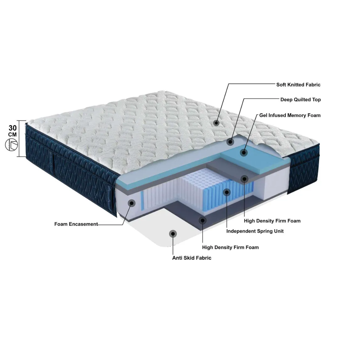 Our unique cooling, gel infused memory foam, made with open cell technology for superior ventilation and to disperse your body heat while wicking away moisture. For hot sleepers, this is the goldilocks of the mattresses, with the perfect medium feel that keeps you cool and dry. We offer premium innerspring units, with individually wrapped coils, that gives you more support than any other hybrid mattress on the market. These coils provide a healthy degree of push back and bounce, while also isolating motion to a greater extent than a traditional coil system. The coils are strategically placed in perfect zones that offer precise support and respond to your body’s unique shape and subtle movements without transferring motion to your partner. Plus, the perimeter is reinforced, so you can sleep all the way to the edge. Size 100cm x 190cm (Single Size), 100cm x 200cm (Single Size), 120cm x 190cm (Single Size), 120cm x 200cm (Single Size), 150cm x 200cm (Queen Size), 160cm x 200cm (Queen Size), 180cm x 200cm (King Size), 200cm x 200cm (Super King Size), 90cm x 190cm (Single Size) Quilting Type Deep Quilkting Motion N/A Fabric Type Soft Knitted Fabric Comfort Layer Gel Infused Memory Foam Core Type Independent Spring Unit (Pocket Spring) Cover Type Euro Top Foam Encasement Yes Height 28cm Weight N/A Brand Cool Max Euro Top Mattress by Ruby