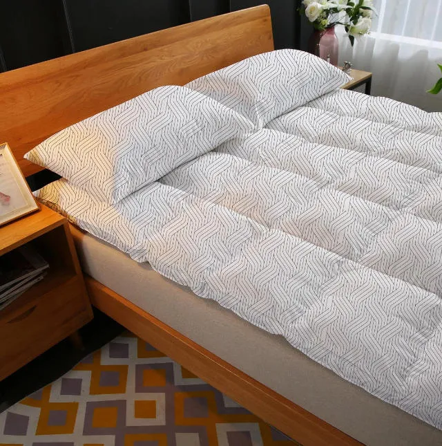 Cotton Home 3pc Set PolyCotton Mattress Topper 90x200+8cm with 2 Pillow cover, Off White And Black Geoemetric