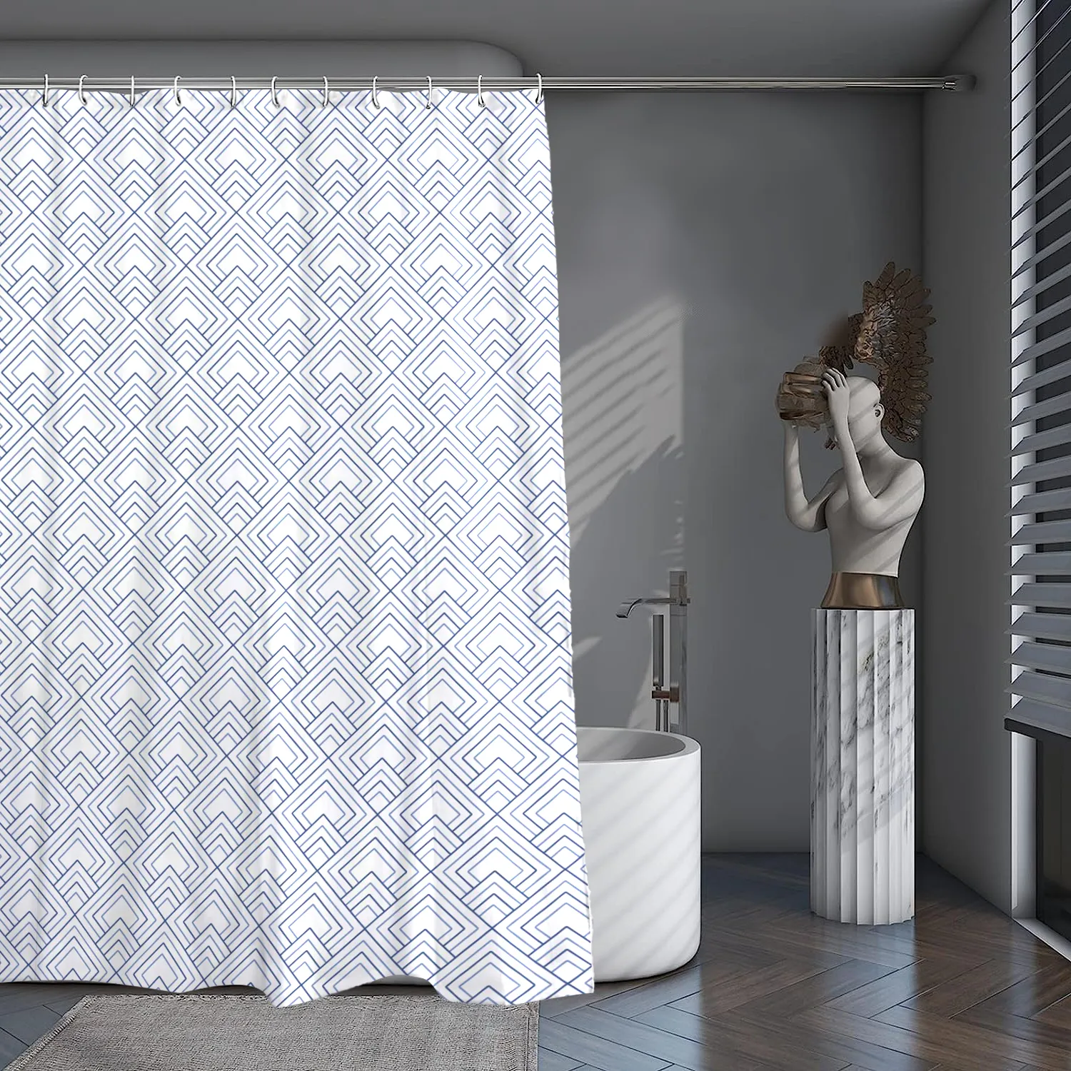 Experience the ultimate blend of practicality and aesthetics with our printed Shower Curtain with Hooks, designed to elevate your bathing space effortlessly. This beautiful shower curtain from Cotton Home measures 180x180 cm, offering a perfect fit for most standard shower areas.