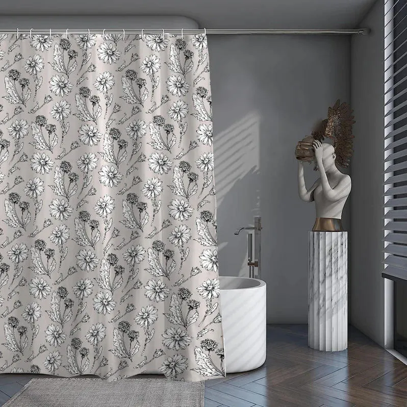 Experience the ultimate blend of practicality and aesthetics with our printed Shower Curtain with Hooks, designed to elevate your bathing space effortlessly. This beautiful shower curtain from Cotton Home measures 180x180 cm, offering a perfect fit for most standard shower areas.