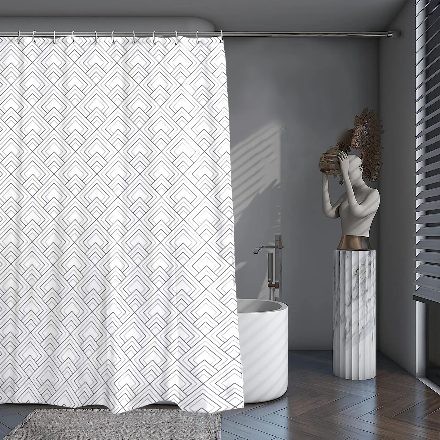 Experience the ultimate blend of practicality and aesthetics with our printed Shower Curtain with Hooks, designed to elevate your bathing space effortlessly. This beautiful shower curtain from Cotton Home measures 180x180 cm, offering a perfect fit for most standard shower areas.