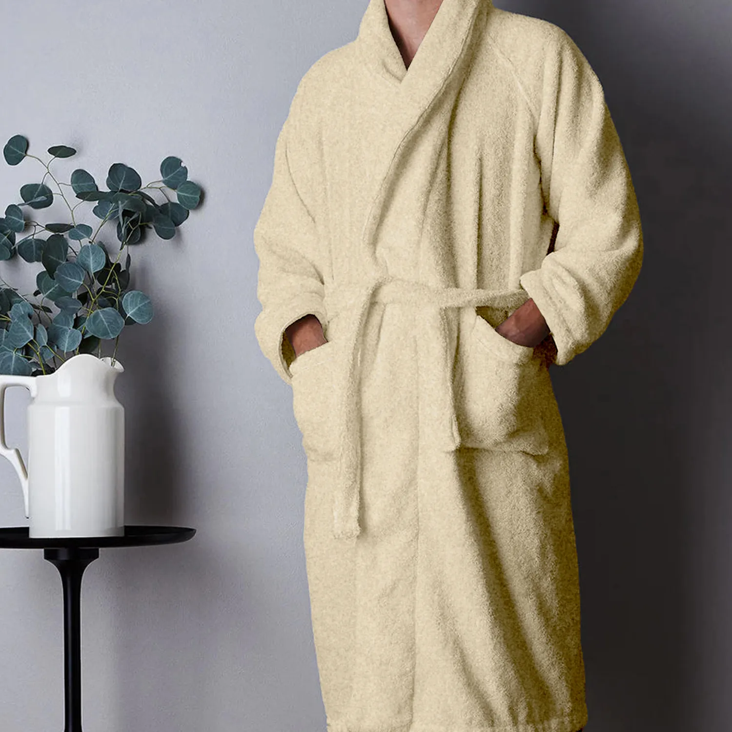 Cotton Home Bathrobe with Pockets Terry-Ivory
