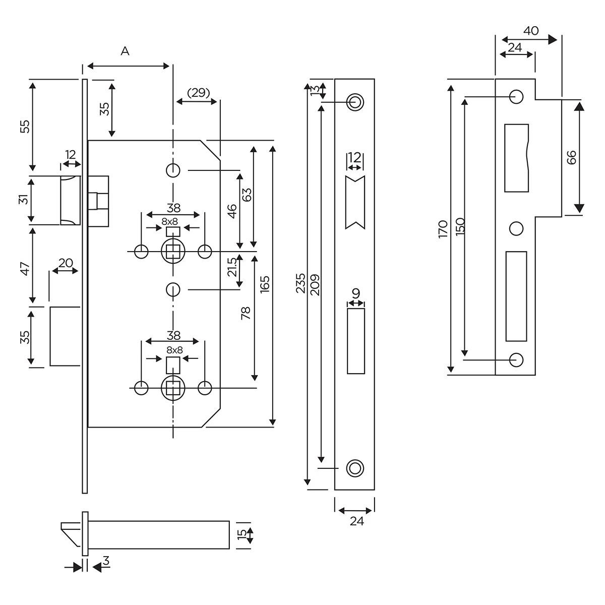 Material: Stainless Steel Grade: SUS 304 Finish: Satin Stainless Steel Forend Plate Type: Square Distance: 78 mm 2 - Turn Dead Bolt Suitable For Wooden, Metal, Fire, Smoke & Swing Doors Certification: CE EN 12209 / DIN 18251 EN 1634 240 Mins Fire Rated EN 1670: 240 Hours NSS Corrosion Resistance