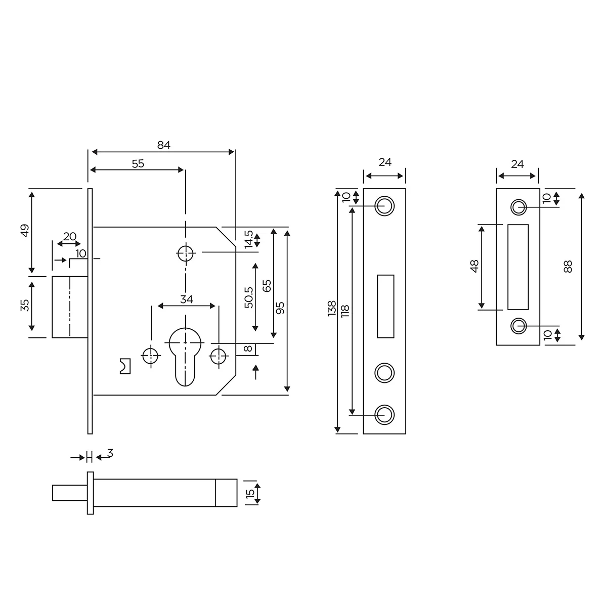 Material: Stainless Steel Grade: SUS 304 Finish: Satin Stainless Steel Backset Size: 55 mm Forend Plate Type: Square 2-Turn Dead Bolt Suitable For Wooden, Metal & Swing Doors