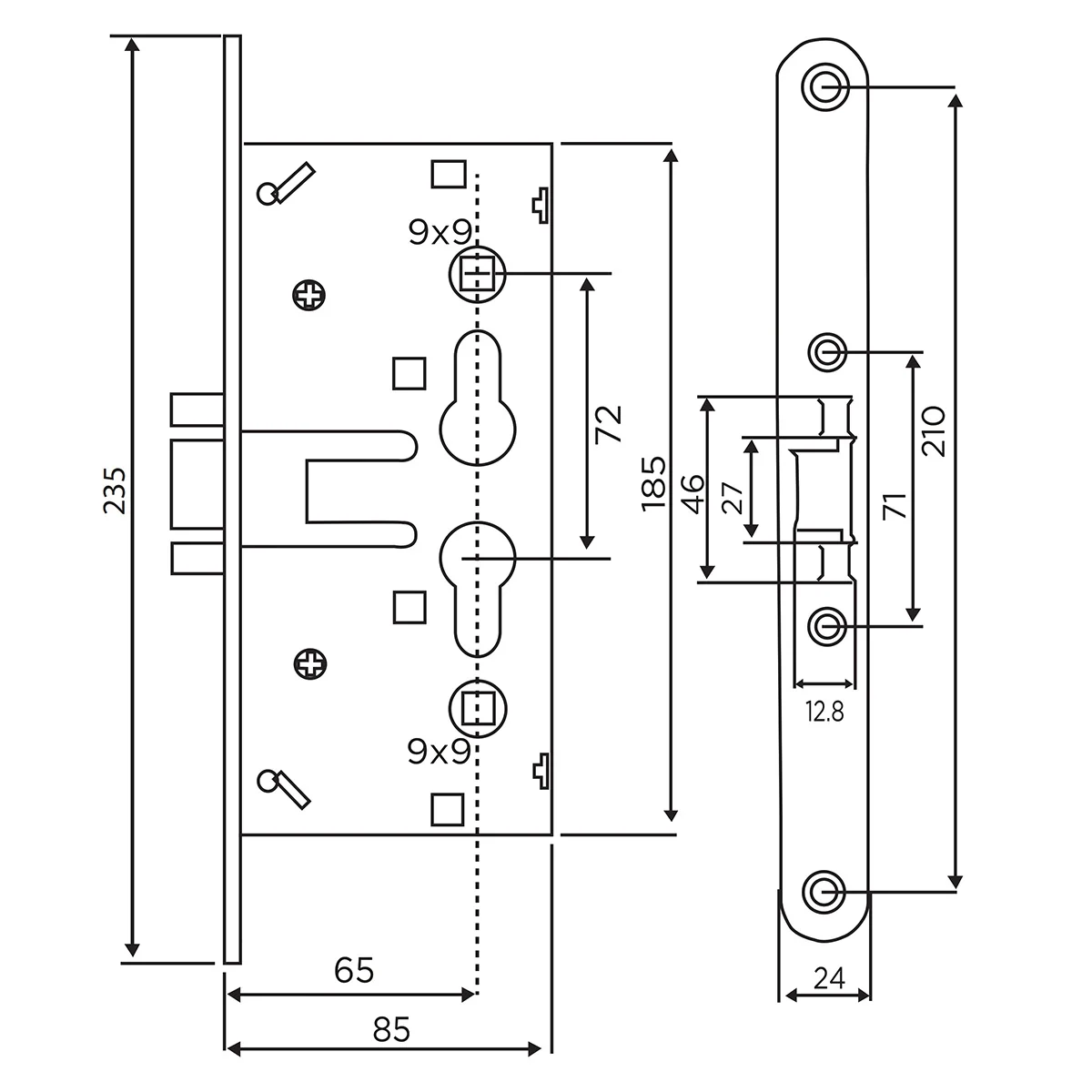 Material: Iron Body Finish: Blue-White Zinc Hole Center 72 mm Backset: 65 mm Iron Body Steel Latch, Striker & Front Plate