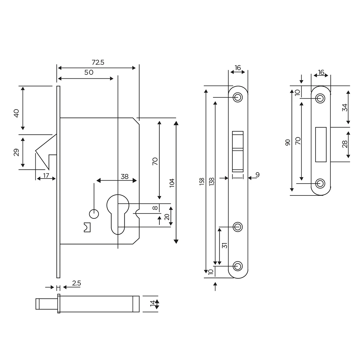 Material: Stainless Steel Grade: SUS 304 Finish: Satin Stainless Steel Forend Plate Type: Round Backset Size: 50 mm High Grade Material Ensures Strength & Durability Suitable For Wooden, Metal & Sliding Doors