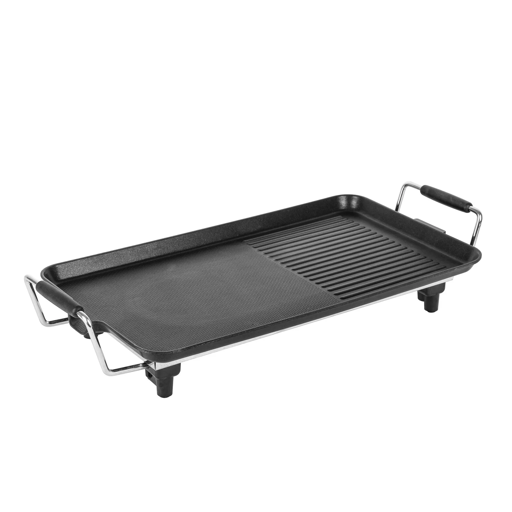 BRAND: NAMSON ITEM NO.: NA-7818 PRODUCT COLOR: BLACK PRODUCT DIMENSIONS: 48X27CM PRODUCT WEIGHT : 1.5 PAKAGE WEIGHT : 2.4KG PRUDOCT DIMENSIONS: W 27 CM X L 48 CM X H 8 CM PAKAGE DIMENSIONS : W 30 X L 63 X H 13.4 POWER : 1360W PLUG TIPE : BS (3 PIN) CABLE :3.0.75MM² X 1M BODY MATERIAL : ALUMINIUM POWER CONSUMPTION : 220-240V AC 50/60Hz . PREMIUM QUALITY . DURABLE NON-STICK COATED PAN PLATE . EASY TO COOK . ADJUSTABLE TEMPERATURE . SUITABLE FOR ALL TYPES OF MEATS AND VEGETABLES . COOL-TOUCH HANDLES WITH SILICON COVER . MULTIPURPOSE SUTABLE FOR : PIKNIK - OUTDOORS - KITCHEN - BACKYARD . ADJUSTABLE TEMPERATURE CONTROL : Take full control of your cooking with the Namson Electric Grill Pan. Easily adjust the temperature to suit your preferences and ensure perfectly cooked meals every time. . COOL-TOUCH HANDLES : No more burnt fingers! The Namson Electric Grill Pan is equipped with cool-touch handles, so you can safely handle the pan even when it's sizzling hot. . NON-STICK COATED REMOVABLE OIL TRAY : Say goodbye to sticky messes and tedious clean-ups. The Namson Electric Grill Pan features a non-stick coated removable oil tray, making it effortless to remove excess oil and clean up afterwards. . POWERFUL 1360W HEATING ELEMENT : With 1360W of power, this grill pan heats up quickly and evenly, ensuring efficient cooking and delicious results. . VERSATILE COOKING OPTIONS : Whether you're grilling meats or sautéing vegetables, the adjustable temperature control makes the Namson Electric Grill Pan suitable for all types of ingredients. Get creative in the kitchen and explore endless cooking pos . DURABLE ALUMINIUM BODY : Built to last, the Namson Electric Grill Pan features a sturdy aluminium body that can withstand high temperatures and heavy use. Cook with confidence knowing that your grill pan is built for durability. . EASY TO COOK - EASY TO CLEAN : Cooking has never been easier with the Namson Electric Grill Pan. Its non-stick coated pan plate ensures food slides off effortlessly, while the easy-to-clean design makes post-meal