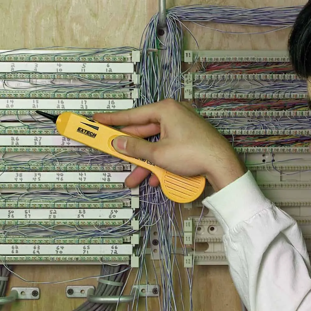 Insulated inductive probe tip prevents shorting conductors Tests include wire trace, continuity test, clear/busy/ringing line test and tip/ring identification Alligator clips for non-terminated cables and modular connectors for direct connections to telephone and internet wiring Selectable continuous or variable tone generation Built-in speaker on probe with sensitivity control Specifications Weight 272g (0.6lb) Power 9V battery (tone generator and probe (1 each) Tone output 1kHz, 6V square wave (approximately) Generator 63.5 x 63.5 x 38.1mm (2.5 x 2.5 x 1.5in) Probe 228 x 57 x 25.4mm (9 x 2.25 x 1in) Items Included Amplifier probe Tone Generator with alligator clips modular RJ11 phone RJ45 digital connector cables 9V batteries case