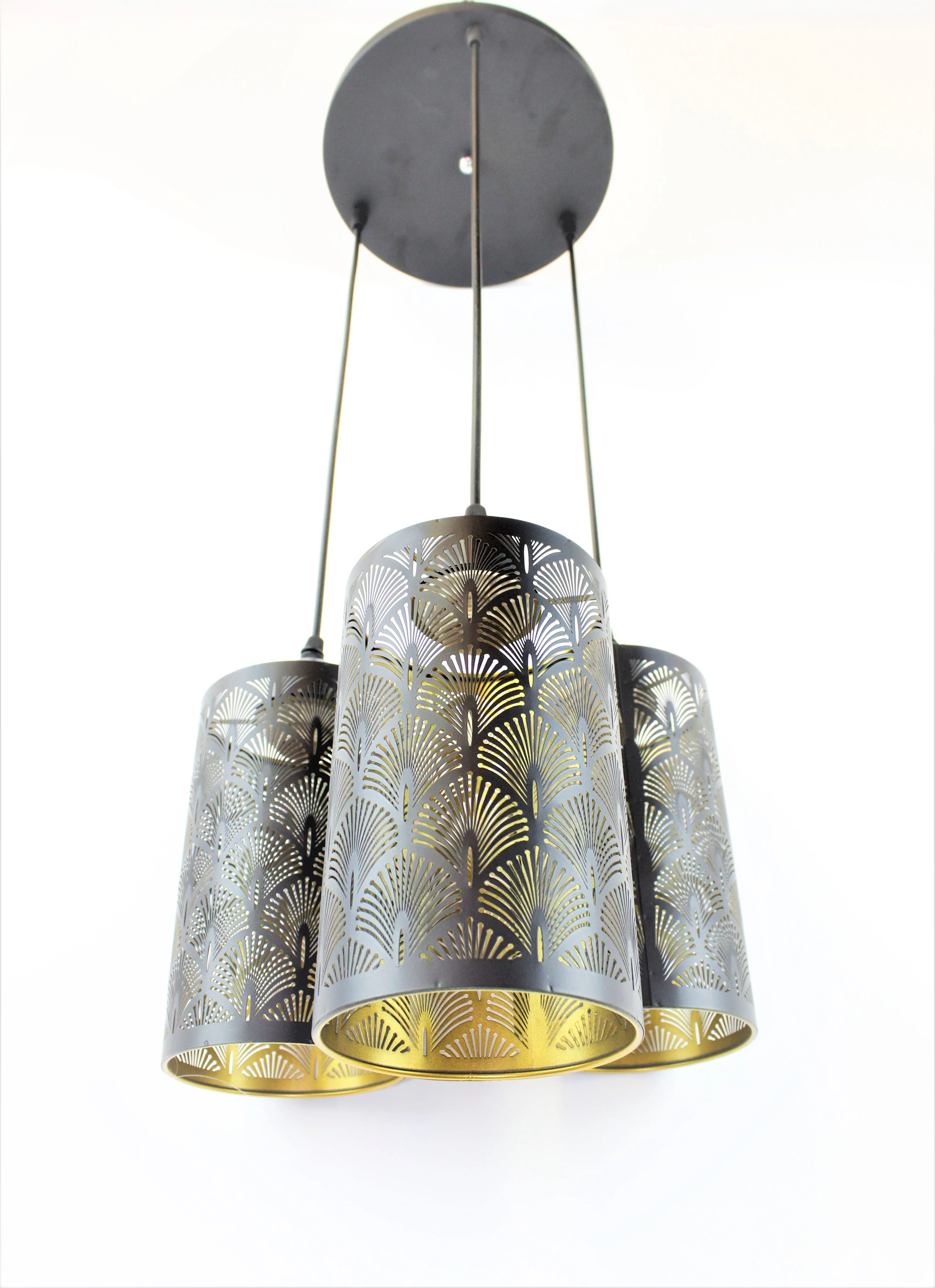 Faccini Pendant Light 5771/3 METAL COVER / ( OUT BK/ IN GD )
