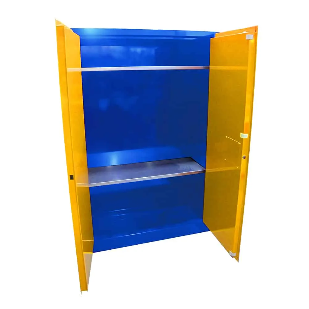 With 2 adjustable shelves Keeps dangerous chemicals safely organized and reduce fire risks Storage capacity of 45 gallons Weight 131kg Height 1651mm Width 1137mm Depth 476mm Capacity 45 gallons