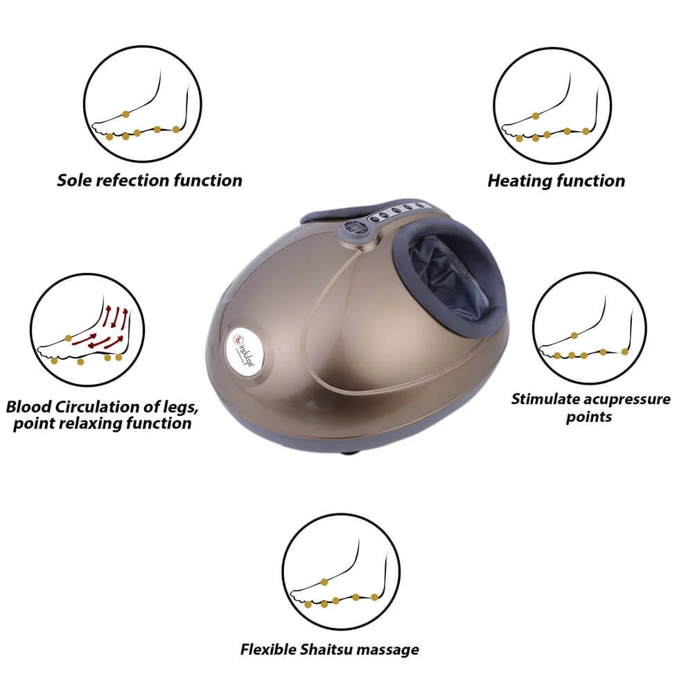 Indulge IF-8009 Foot & Leg Massager Machine for Pain Relief with Intense Roller Reflexology Massage, Shiatsu, Kneading, Vibration, Rolling & Heating by PowerMax Fitness for Home Use and Foot Spa Massa