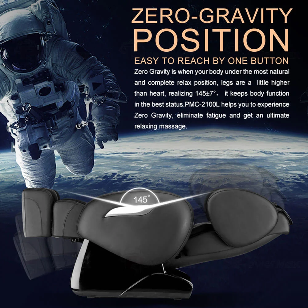 Product Name: Indulge PMC-2100L Massage Chair Model No: PMC-2100L Available Color: Black Purpose of Use: Massage Chair - relaxing muscles, Moving, Improving blood flow temporarily alleviate joint pain, enhance detoxification Massage Modes: Kneading, Pressing, Rolling, Stretch, Finger Knead, 3 Auto Programs (Relax Mode, Refresh Mode, Stretch Mode) Special Features: 3 Auto Programs (Relax Mode, Refresh Mode, Stretch Mode) 14 Massage Rollers Full Body Air Pressure massage at 3 Degrees Variable Intensity Extendable Footrest Heating with Smart Thermostat for overheating protection Foot Rollers Intelligent Massage Rollers Acupoint and pulse Tracking Patented micro-spatial intelligence slide forward Music/Connect/Control: LCD Remote Max User Weight: 120 Kg Zero Gravity: Yes, 2 stage of Zero Gravity Air Bags: 32 Pcs Airbag Intensity: 3 Degrees Wall space: 25.4cm Against the wall, Space Saving Power Source: 220-240V Alternating Current: 50/60Hz Power Consumption: 120W Maximum Operating Period: 30 minutes Noise level: ( ? )60(dB) within 30cm
