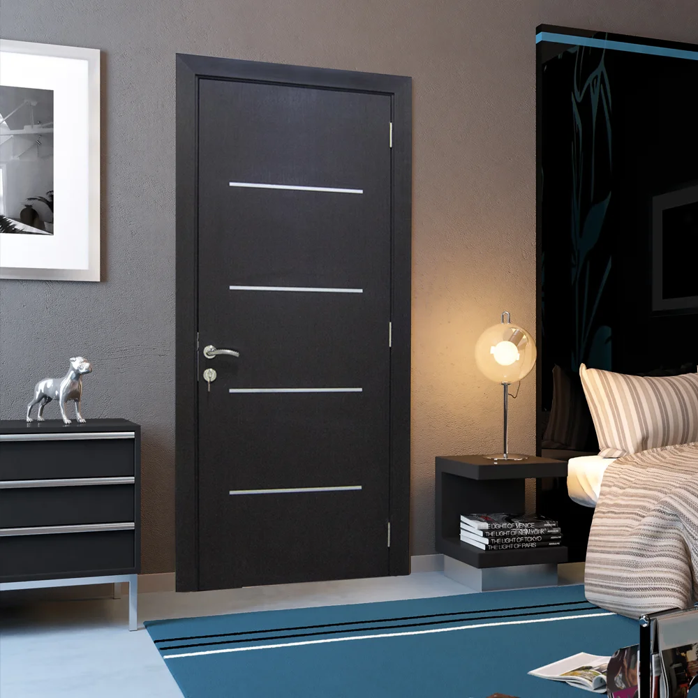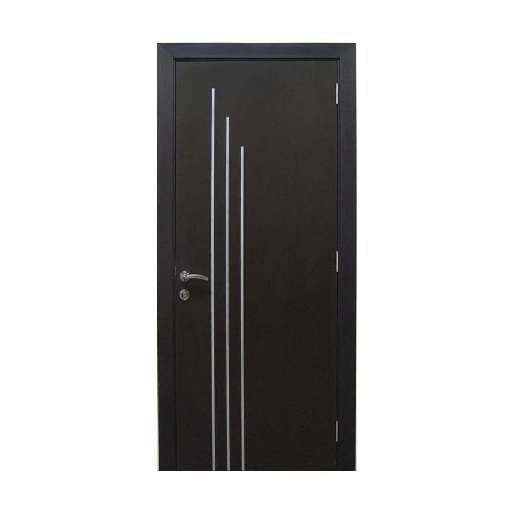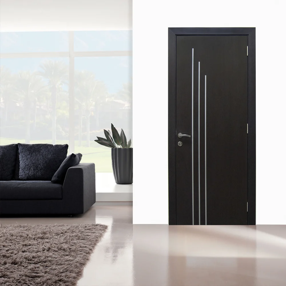 Core: Solid (Chipboard) Finish: Synthetic Veneer Frame: PVC Wrapped with Synthetic Veneer Architrave: PVC Wrapped with Synthetic Veneer Color Shown: Euro Wenge (More Colours Available from IML Range) Accessories: Butterfly Hinge, Handle, Lockbody with Key Clylinder Available Sizes: H: 2100, 2120 up to 2140 mm W: 750, 850 up to 950 mm