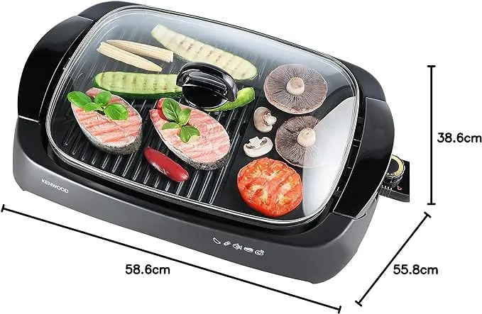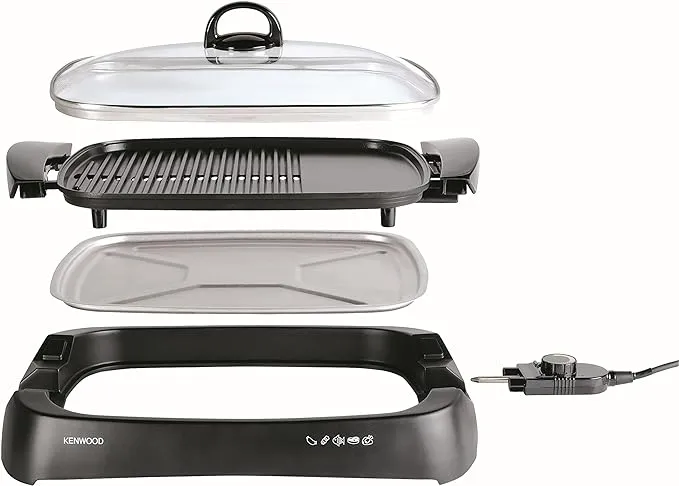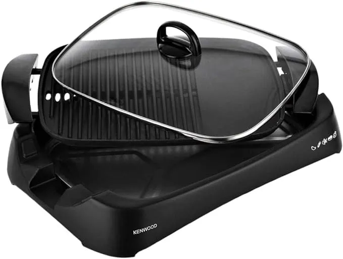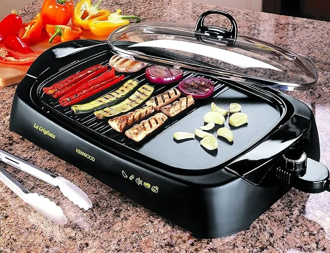 KENWOOD Grill 1700W Contact Health Large Family Sized Griddle with Glass Lid, Variable Temperature Control, Cool Touch Handles - Ideal for Steak, Chicken, Fish, Vegetables HG230 Black