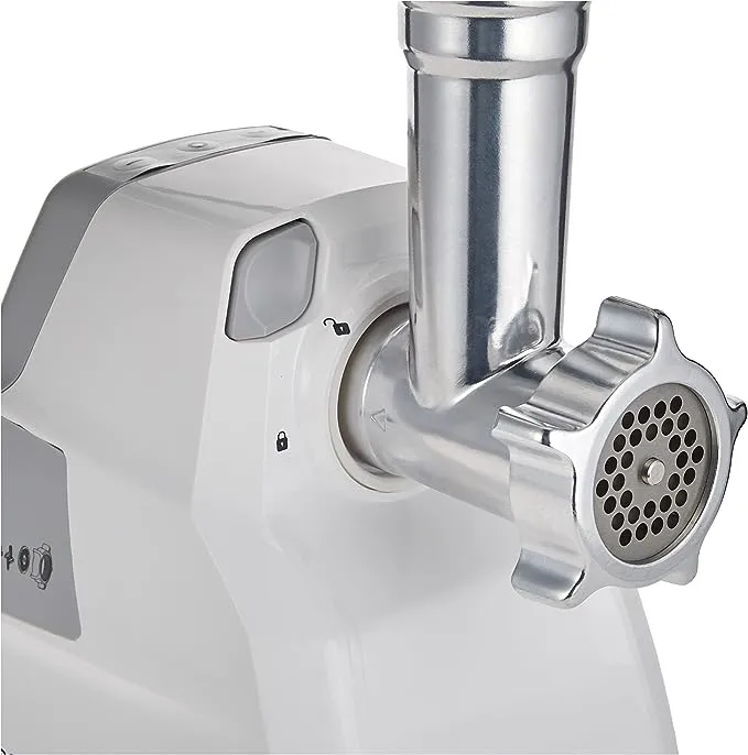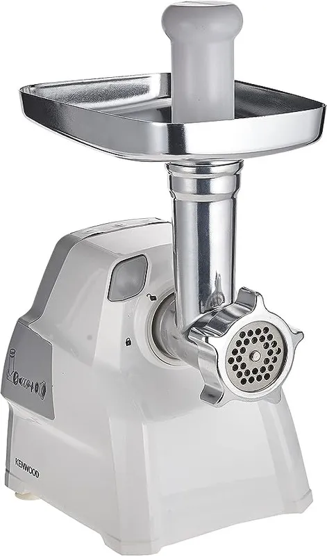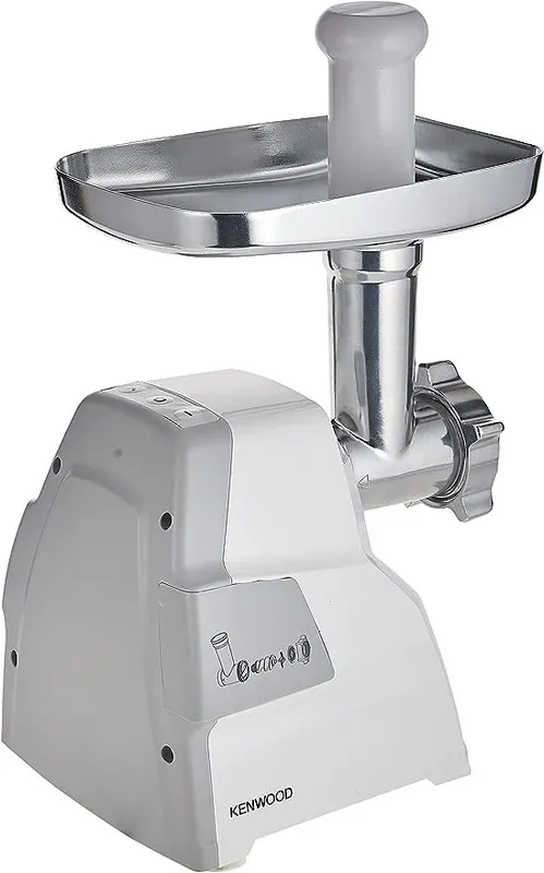 KENWOOD Meat Grinder 2100W Meat Mincer with Kibbeh Maker, Sausage Maker, Biscuit Attachment, Feed Tube Pusher, 3 Stainless Steel Screens for Fine, Medium & Coarse Results MGP40.000WH White