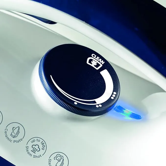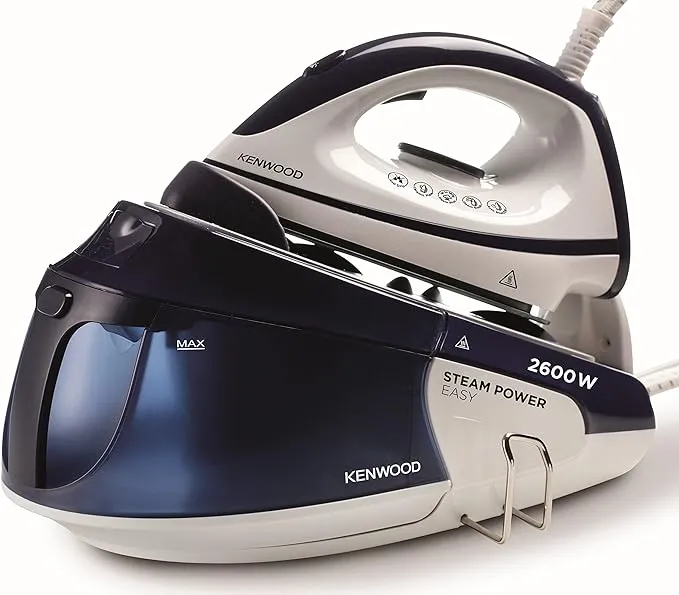 KENWOOD Steam Iron Steam Station 2600W with 1.8L Water Tank Capacity, Ceramic Soleplate, 180g Steam Shot, Anti Drip, Auto Shut Off, Self Clean Function SSP20.000WB White/Blue