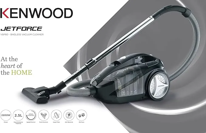 Kenwood Vacuum Cleaner 2200W Multi Cyclonic Bagless Canister 2.5L With 5M Cable, Surface, Speed Control, Hepa Filter, Anti Bacteria, Pet Care For Home & Office Vbp60.000Bk Black