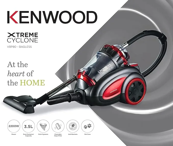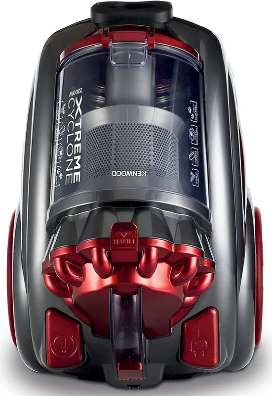 KENWOOD Vacuum Cleaner 2200W Multi Cyclonic Bagless Canister Vacuum Cleaner 3.5L with 5m Cable, Multi-Surface, Cleanable Hepa Filter, Anti Bacteria, Pet Care for Home & Office VBP80.000RG Grey/Red