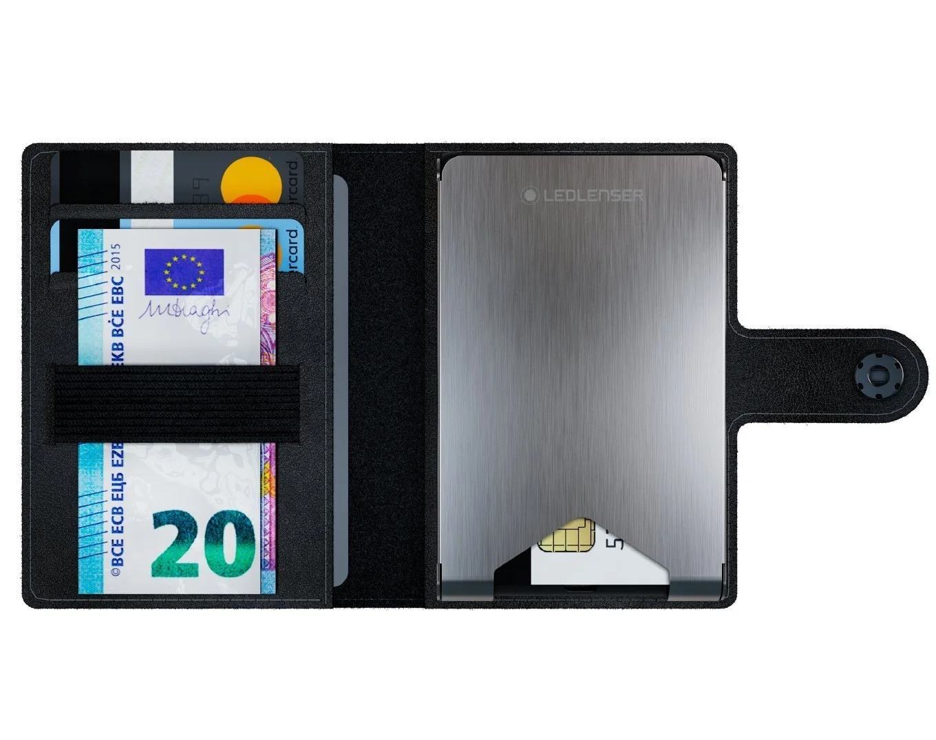 A world first. Introducing our first-ever wallet, paired with 150 lumens of bright, white light. The patent-pending Ledlenser Lite Wallet? is the practical everyday companion for your pocket or bag.The card holder arranges identity card, driving license, credit cards with an elastic band to secure a little cash to have on hand.Thanks to integrated RFID protection, sensitive data is always safe.The exterior of the Lite Wallet is a noble case made of fine, rich leather and available in different colors. The LED lamp lights the way with up to 150 lumens light output and homogeneous light distribution with an on/off switch intuitively placed on the back so you can easily turn it on when you need to shine a light on things. Finally, the Lite Wallet battery can be quickly charged via a wireless charging station or USB-C cable. ?*Wireless charger not included with purchase.